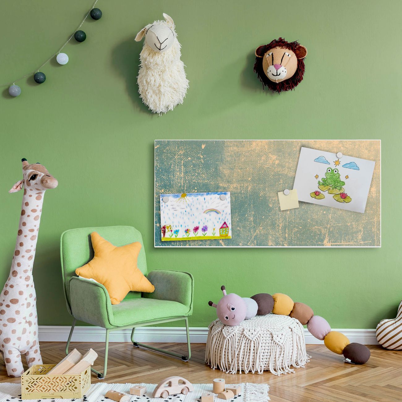 FUNKTION:  Die banjado Magnettafel mit Motiv Patina Grün Motiv bringt Ordnung in Ihr Zettelchaos. Fotos, Termine, Notizen oder Rezepte lassen Sich hier stilvoll mit Magneten ordnen, Sie behalten alles im Blick. An der Design Magnetwand halten alle handesüblichen Magnete. DESIGN:  Die Metall Pinnwand mit dem Motiv Motiv Patina Grün ist ein eleganter Begleiter im Alltag. Mit dieser Magnettafel haben Sie auch ohne Notizen und Magnete ein schönes Dekoelement. Das Format bietet Ihnen ausreichend Platz um alle wichtigen Informationen im Blick zu behalten. DETAILS: Die magnetische Pinnwand besteht aus silber-grau, weiß oder schwarz lackiertem Stahl. Sie hat eine Größe von 78cm x 37cm. Es befinden sich auf der Rückseite vorgefertigte Löcher die eine schnelle und unkomplizierte Anbringung ermöglichen. Das Motiv ist mit einem seidenmatten Laminat versehen und schützt so zusätzlich vor Kratzern. NUTZEN:  Sie können diese Magnettafel wunderbar als Wandbild nutzen, es halten alle handelsüblichen Magneten daran. Das Memoboard ist mit einem feuchten Lappen oder Schwamm abwischbar. Sie finden bei uns eine große Auswahl an passenden Magneten. BANJADO:  Wir sind ein kleines Team aus dem Herzen von Sachsen. Wir fertigen alle Artikel von Hand für Sie an, Sie erhalten keine preiswerte Importware. Auf Wunsch können Sie auch Ihr eigenes Foto auf die Magnettafel aufbringen, schreiben Sie uns an. Herzlichst, Ihr banjado-Team