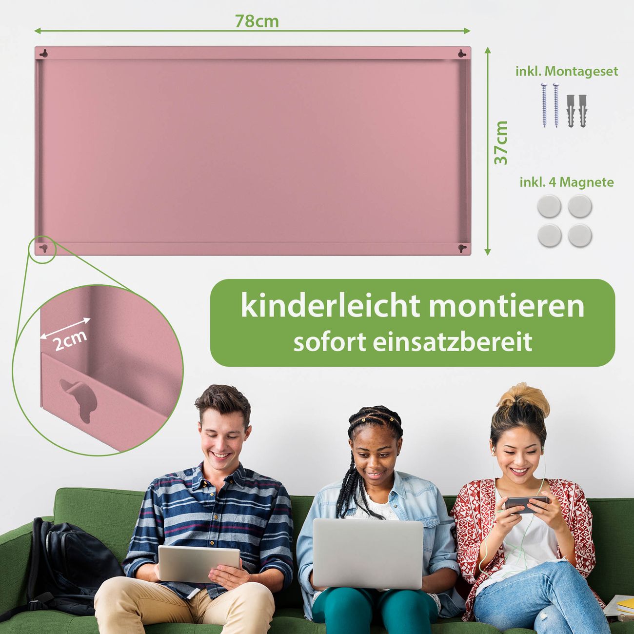 • Zubehör: 4 Magnete, Schrauben und Dübel