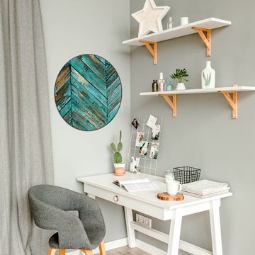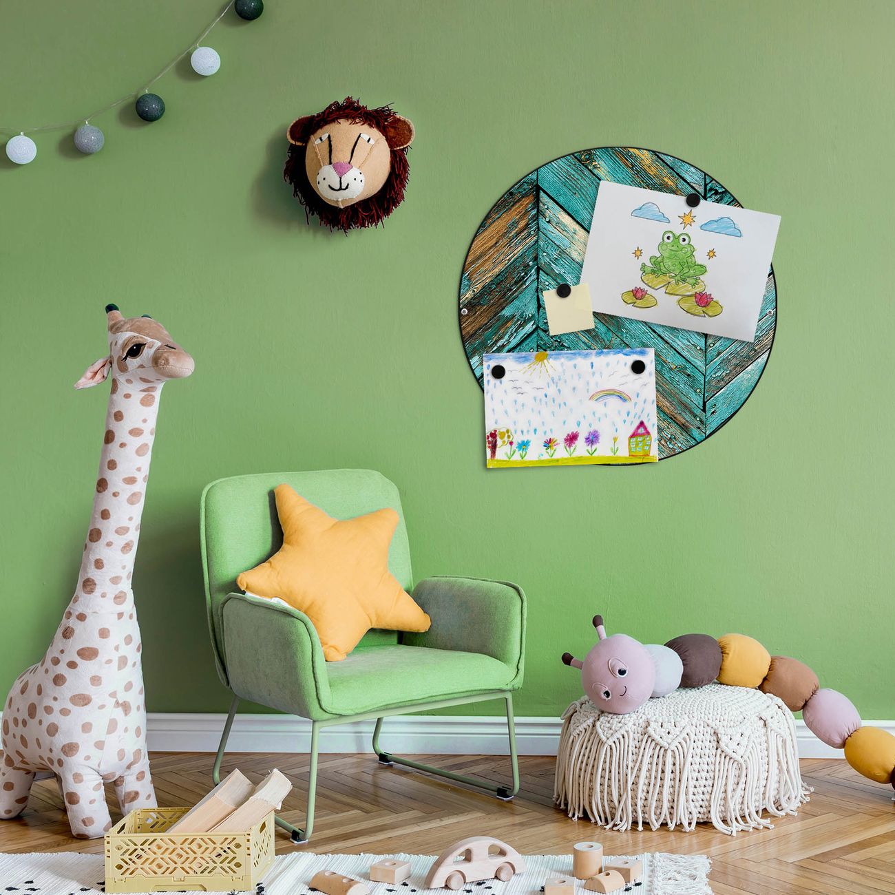 FUNKTION / DESIGN Die banjado Magnettafel mit dem Motiv Motiv Altes Holz Blau bringt Ordnung in Ihr Zettelchaos. Fotos, Termine, Notizen oder Rezepte lassen Sich hier stilvoll mit Magneten ordnen, Sie behalten alles im Blick. Die Design Magnetwand ist beschreibbar und wieder abwischbar. Mit dieser Pinnwand haben Sie auch ohne Notizen und Magneten ein schönes Dekoelement. Das Format bietet Ihnen ausreichend Platz um alle wichtigen Informationen im Blick zu behalten. DETAILS / NUTZEN Die magnetische Metall Pinnwand besteht aus schwarz lackiertem Stahl. Sie hat einen Durchmesser von 47cm. Es befinden sich an den Seiten zwei vorgefertigte Löcher die eine schnelle und unkomplizierte Anbringung ermöglichen. Das Motiv ist mit einem seidenmatten Laminat versehen und schützt so zusätzlich vor Kratzern. Es halten alle handelsüblichen Magneten daran. Wir sind ein kleines Team aus dem Herzen von Sachsen. Wir fertigen alle Artikel von Hand für Sie an, Sie erhalten keine preiswerte Importware. Auf Wunsch können Sie auch Ihr eigenes Foto auf die Magnettafel aufbringen, schreiben Sie uns an.