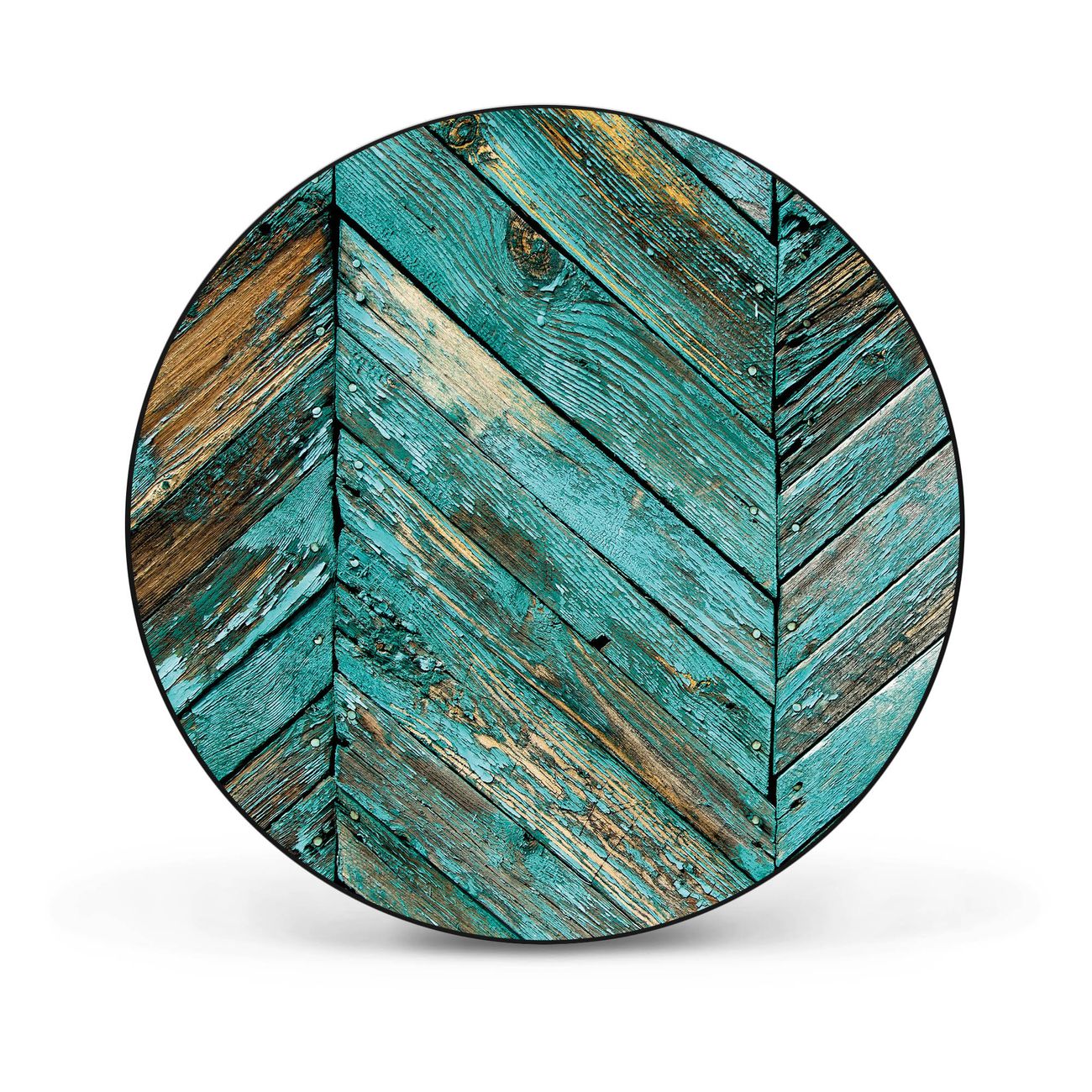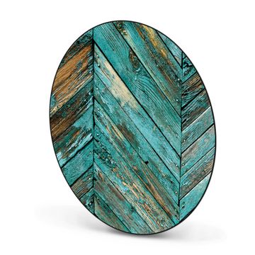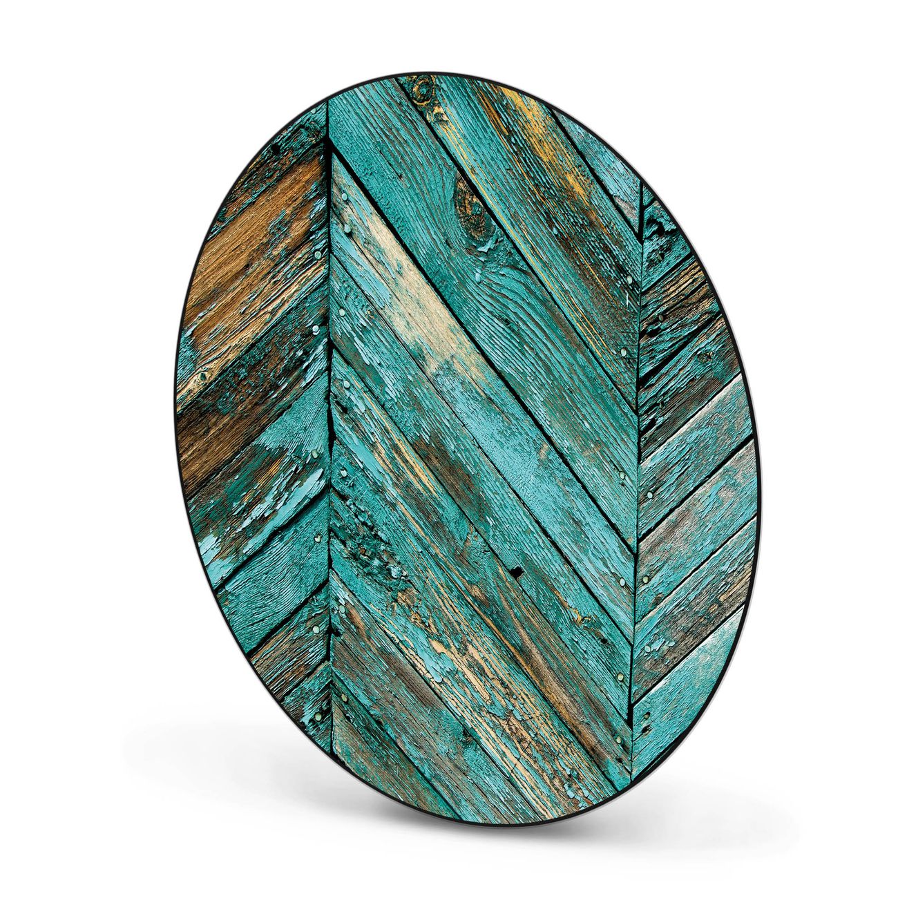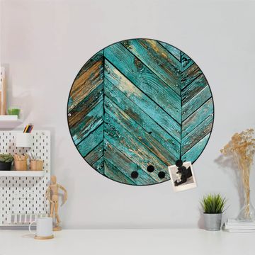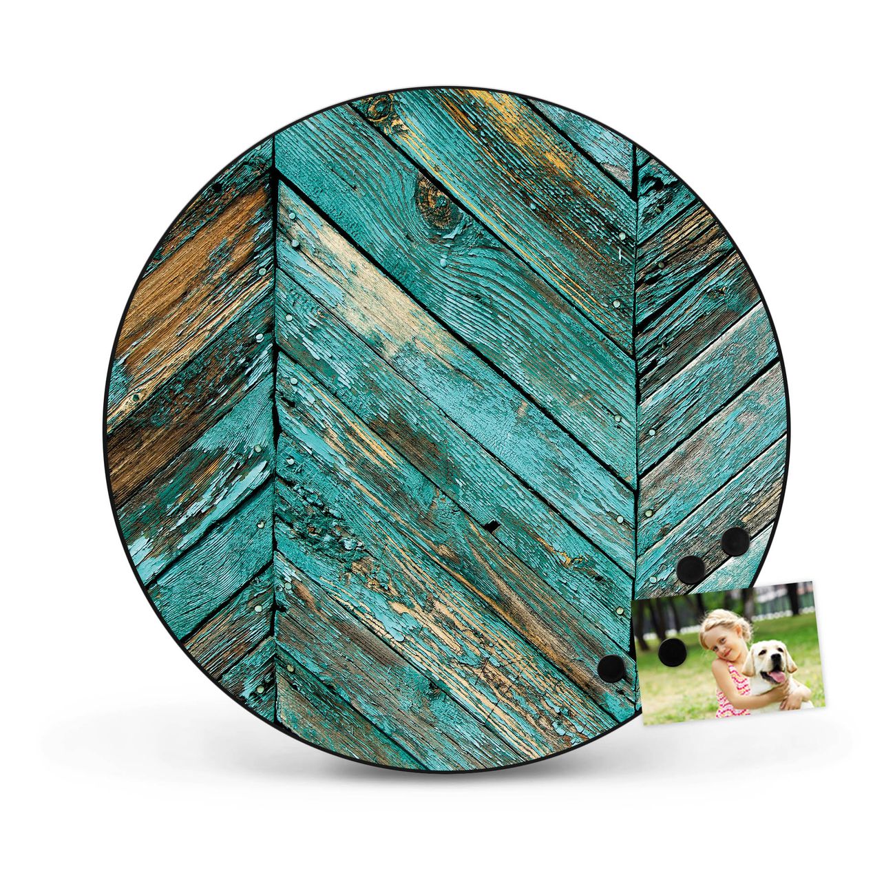Stahl Magnettafel rund 47cm Altes Holz Blau