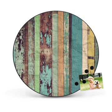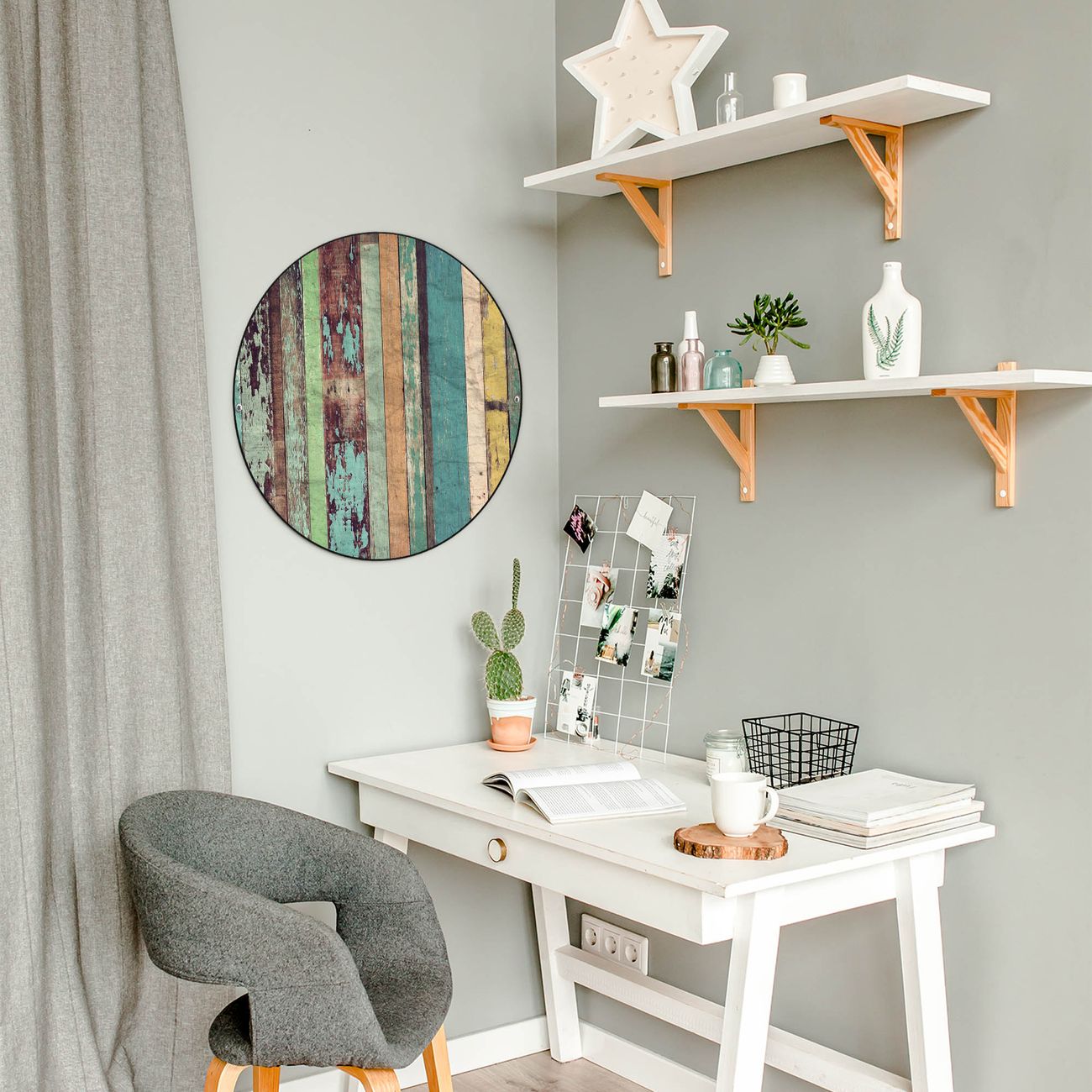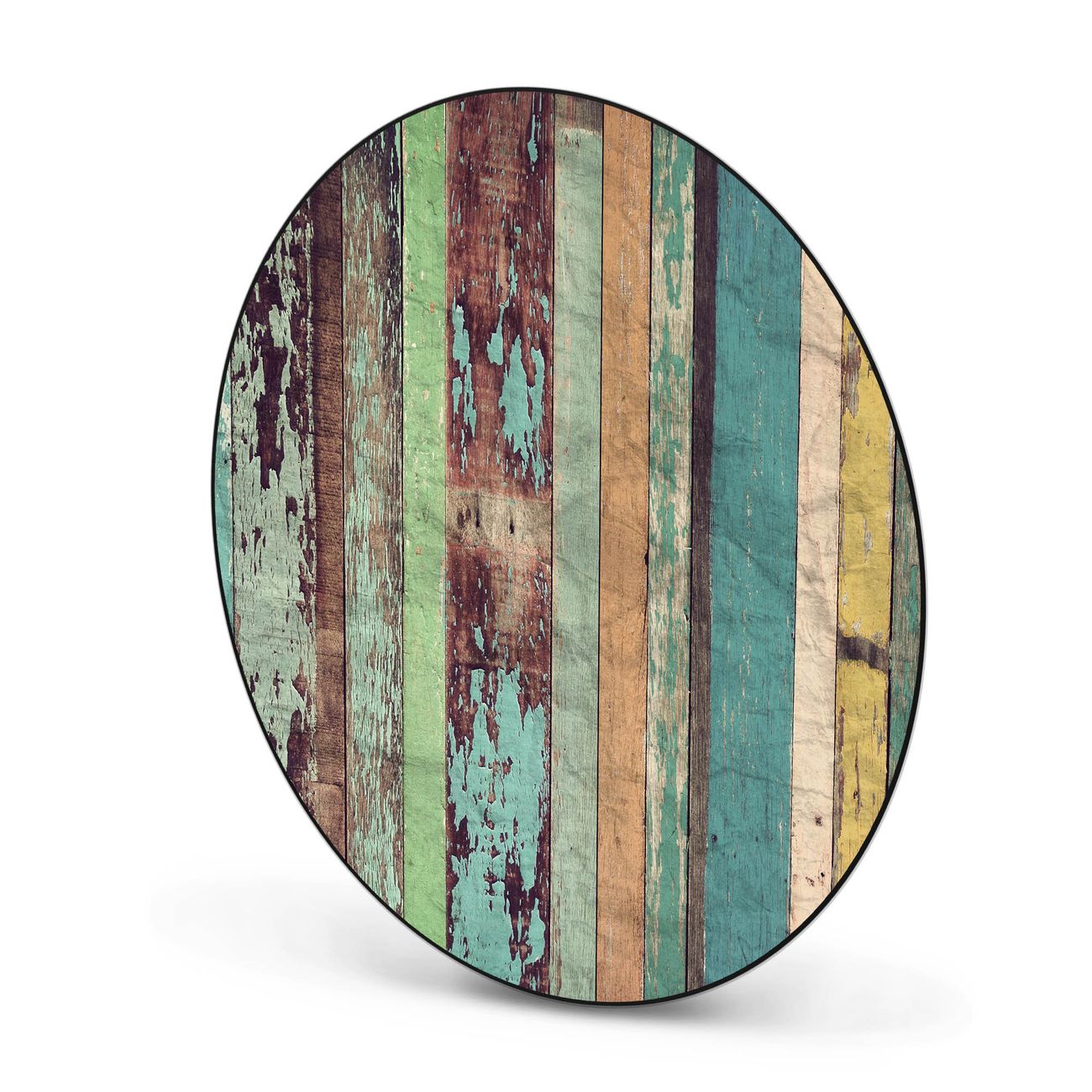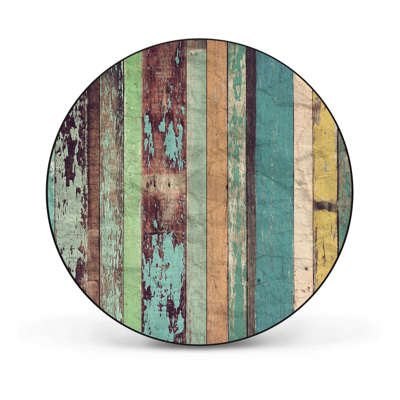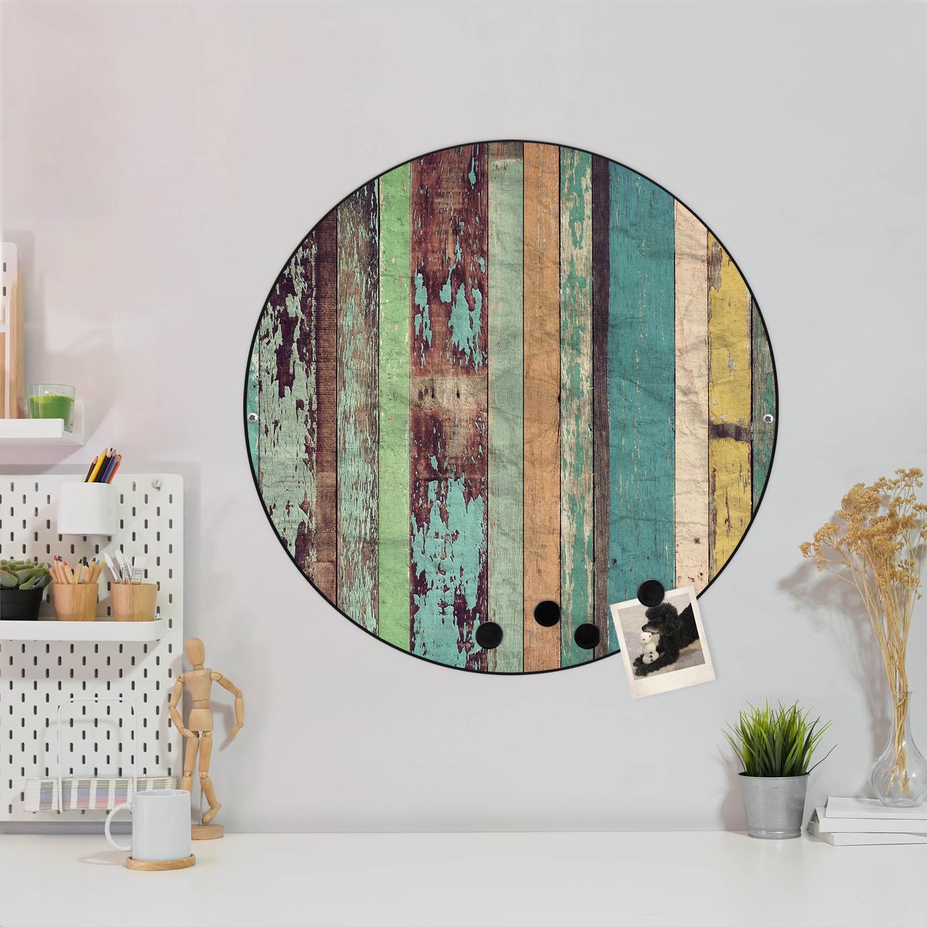 Stahl Magnettafel rund 47cm Bunte Bretterwand