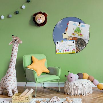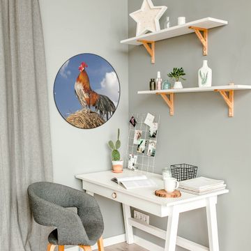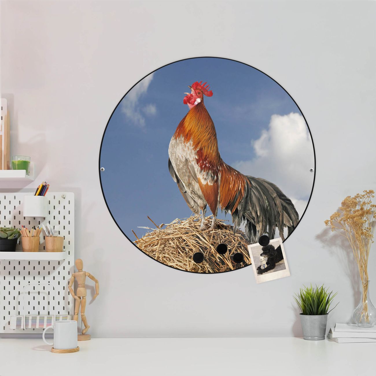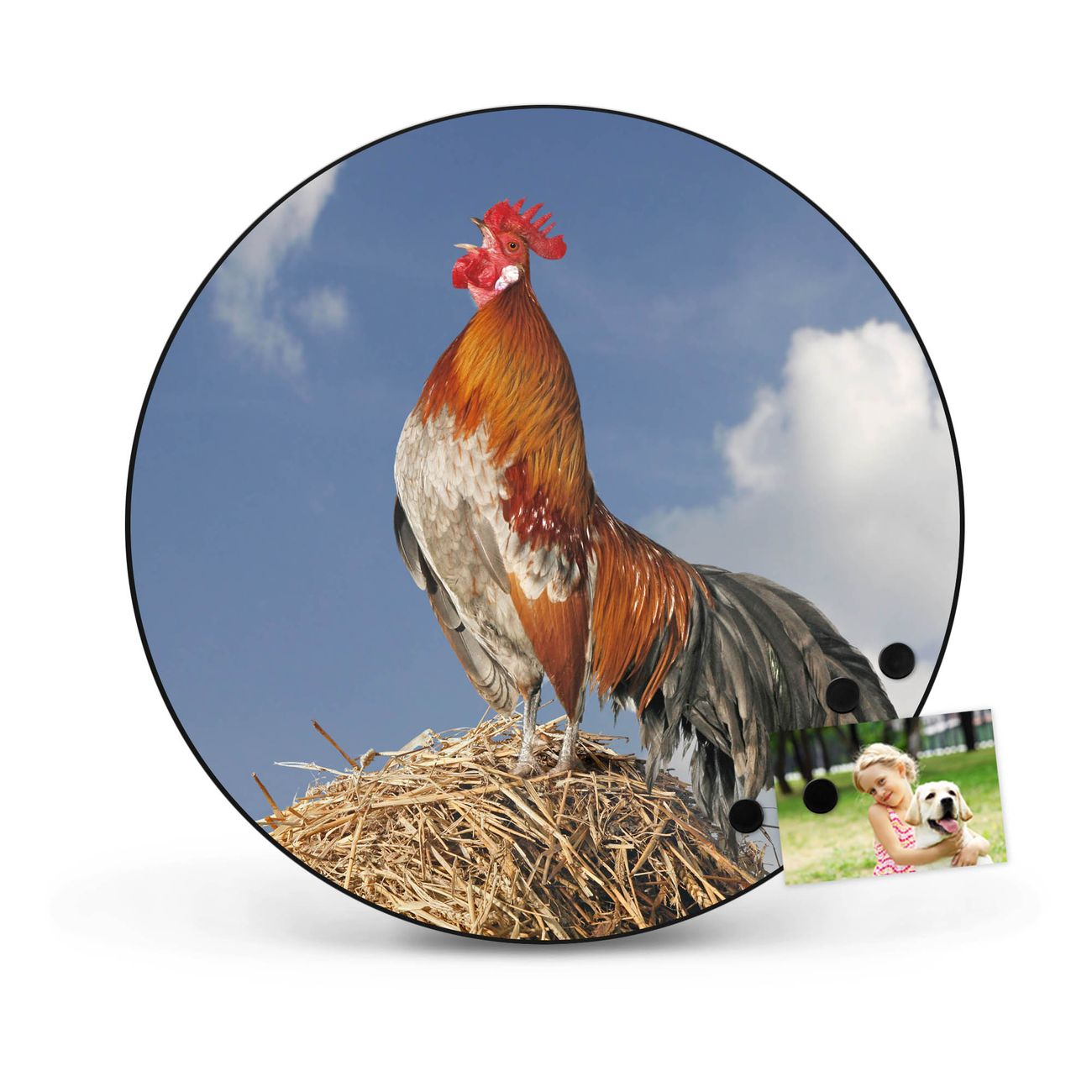 FUNKTION / DESIGN Die banjado Magnettafel mit dem Motiv Motiv Hahn bringt Ordnung in Ihr Zettelchaos. Fotos, Termine, Notizen oder Rezepte lassen Sich hier stilvoll mit Magneten ordnen, Sie behalten alles im Blick. Die Design Magnetwand ist beschreibbar und wieder abwischbar. Mit dieser Pinnwand haben Sie auch ohne Notizen und Magneten ein schönes Dekoelement. Das Format bietet Ihnen ausreichend Platz um alle wichtigen Informationen im Blick zu behalten. DETAILS / NUTZEN Die magnetische Metall Pinnwand besteht aus schwarz lackiertem Stahl. Sie hat einen Durchmesser von 47cm. Es befinden sich an den Seiten zwei vorgefertigte Löcher die eine schnelle und unkomplizierte Anbringung ermöglichen. Das Motiv ist mit einem seidenmatten Laminat versehen und schützt so zusätzlich vor Kratzern. Es halten alle handelsüblichen Magneten daran. Wir sind ein kleines Team aus dem Herzen von Sachsen. Wir fertigen alle Artikel von Hand für Sie an, Sie erhalten keine preiswerte Importware. Auf Wunsch können Sie auch Ihr eigenes Foto auf die Magnettafel aufbringen, schreiben Sie uns an.