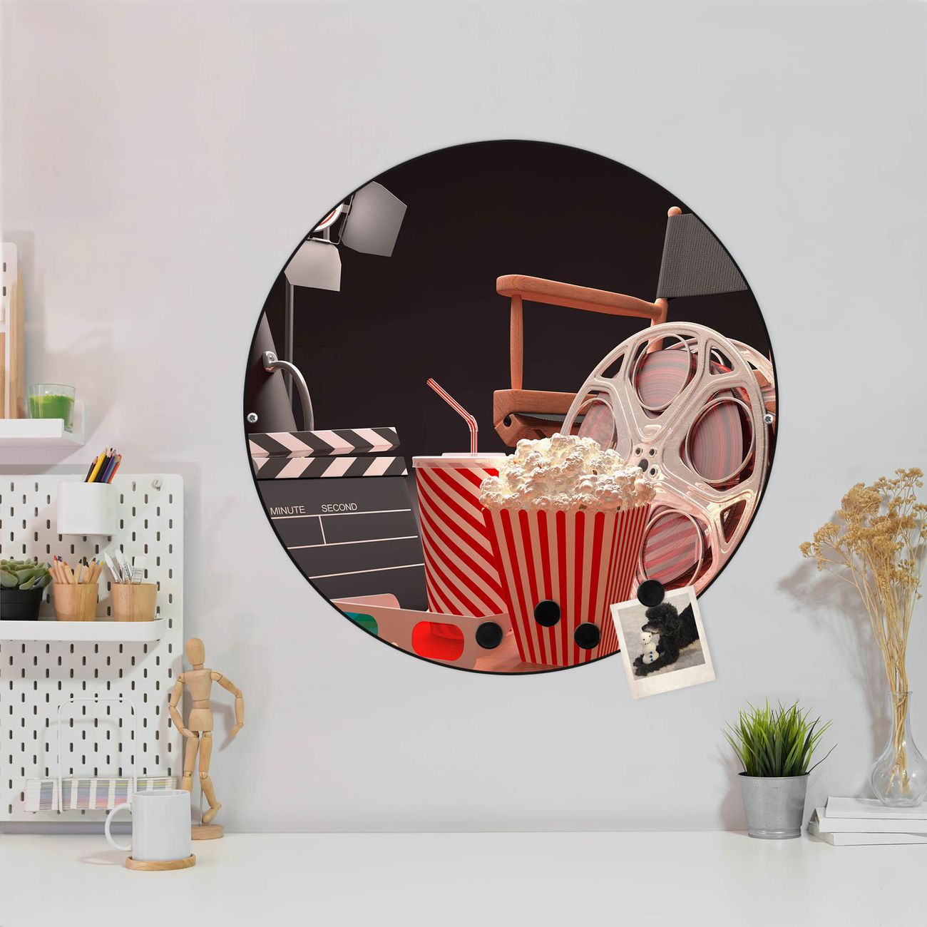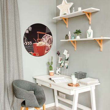 FUNKTION / DESIGN Die banjado Magnettafel mit dem Motiv Motiv Kino bringt Ordnung in Ihr Zettelchaos. Fotos, Termine, Notizen oder Rezepte lassen Sich hier stilvoll mit Magneten ordnen, Sie behalten alles im Blick. Die Design Magnetwand ist beschreibbar und wieder abwischbar. Mit dieser Pinnwand haben Sie auch ohne Notizen und Magneten ein schönes Dekoelement. Das Format bietet Ihnen ausreichend Platz um alle wichtigen Informationen im Blick zu behalten. DETAILS / NUTZEN Die magnetische Metall Pinnwand besteht aus schwarz lackiertem Stahl. Sie hat einen Durchmesser von 47cm. Es befinden sich an den Seiten zwei vorgefertigte Löcher die eine schnelle und unkomplizierte Anbringung ermöglichen. Das Motiv ist mit einem seidenmatten Laminat versehen und schützt so zusätzlich vor Kratzern. Es halten alle handelsüblichen Magneten daran. Wir sind ein kleines Team aus dem Herzen von Sachsen. Wir fertigen alle Artikel von Hand für Sie an, Sie erhalten keine preiswerte Importware. Auf Wunsch können Sie auch Ihr eigenes Foto auf die Magnettafel aufbringen, schreiben Sie uns an.