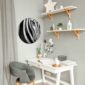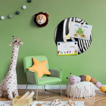 FUNKTION / DESIGN Die banjado Magnettafel mit dem Motiv Motiv Zebra En Face bringt Ordnung in Ihr Zettelchaos. Fotos, Termine, Notizen oder Rezepte lassen Sich hier stilvoll mit Magneten ordnen, Sie behalten alles im Blick. Die Design Magnetwand ist beschreibbar und wieder abwischbar. Mit dieser Pinnwand haben Sie auch ohne Notizen und Magneten ein schönes Dekoelement. Das Format bietet Ihnen ausreichend Platz um alle wichtigen Informationen im Blick zu behalten. DETAILS / NUTZEN Die magnetische Metall Pinnwand besteht aus schwarz lackiertem Stahl. Sie hat einen Durchmesser von 47cm. Es befinden sich an den Seiten zwei vorgefertigte Löcher die eine schnelle und unkomplizierte Anbringung ermöglichen. Das Motiv ist mit einem seidenmatten Laminat versehen und schützt so zusätzlich vor Kratzern. Es halten alle handelsüblichen Magneten daran. Wir sind ein kleines Team aus dem Herzen von Sachsen. Wir fertigen alle Artikel von Hand für Sie an, Sie erhalten keine preiswerte Importware. Auf Wunsch können Sie auch Ihr eigenes Foto auf die Magnettafel aufbringen, schreiben Sie uns an.