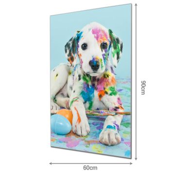 Material: 4mm Sicherheitsglas mit Metallrückwand Eigenschaften: beschreibbar, magnetisch, kratzfest Maße: 60x90x0,6cm, 8,10 kg schwer Motiv Nummer 12792 Bunter Dalmatiner Zubehör: inklusive 4 Neodym-Magnete
