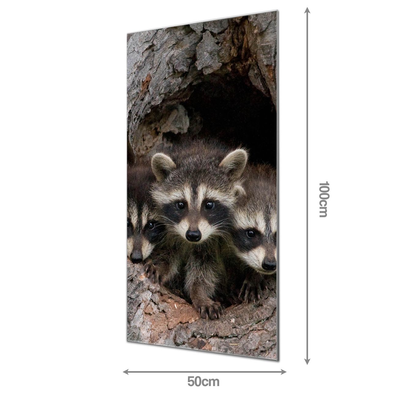 Material: 4mm Sicherheitsglas mit Metallrückwand Eigenschaften: beschreibbar, magnetisch, kratzfest Maße: 50x100x0,6cm, 7,50 kg schwer Motiv Nummer 12804 Drei Waschbären Zubehör: inklusive 4 Neodym-Magnete