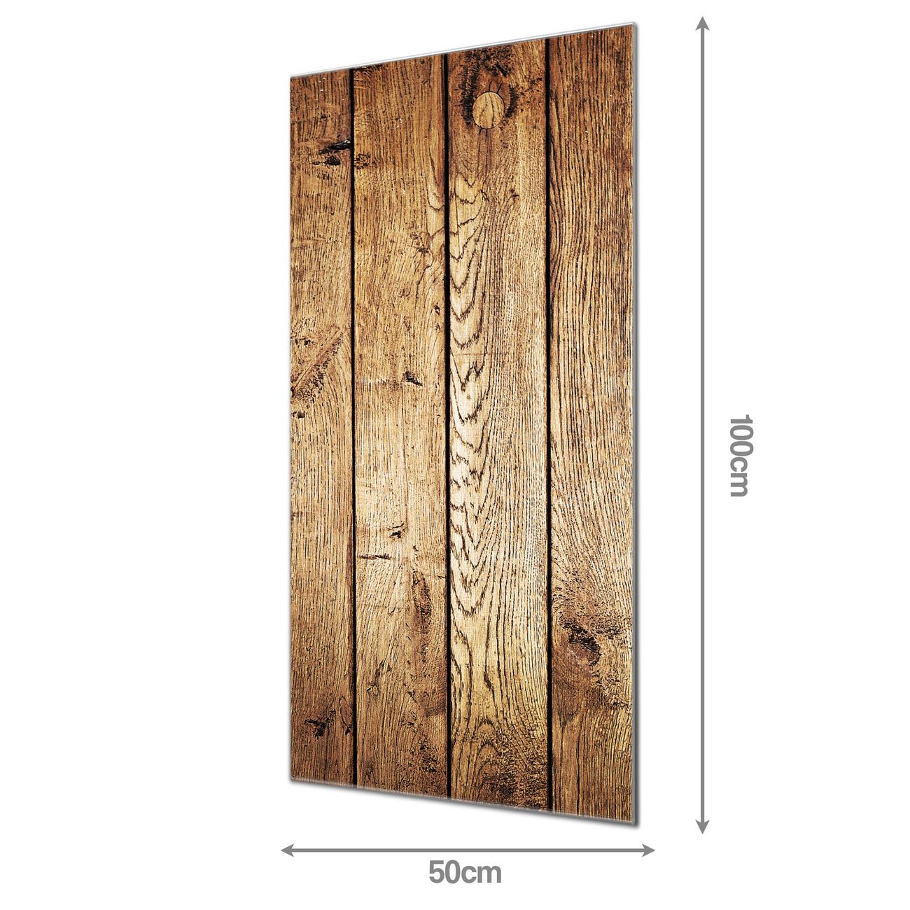 Material: 4mm Sicherheitsglas mit Metallrückwand Eigenschaften: beschreibbar, magnetisch, kratzfest Maße: 50x100x0,6cm, 7,50 kg schwer Motiv Nummer 12153 Geöltes Holz Zubehör: inklusive 4 Neodym-Magnete