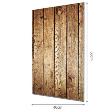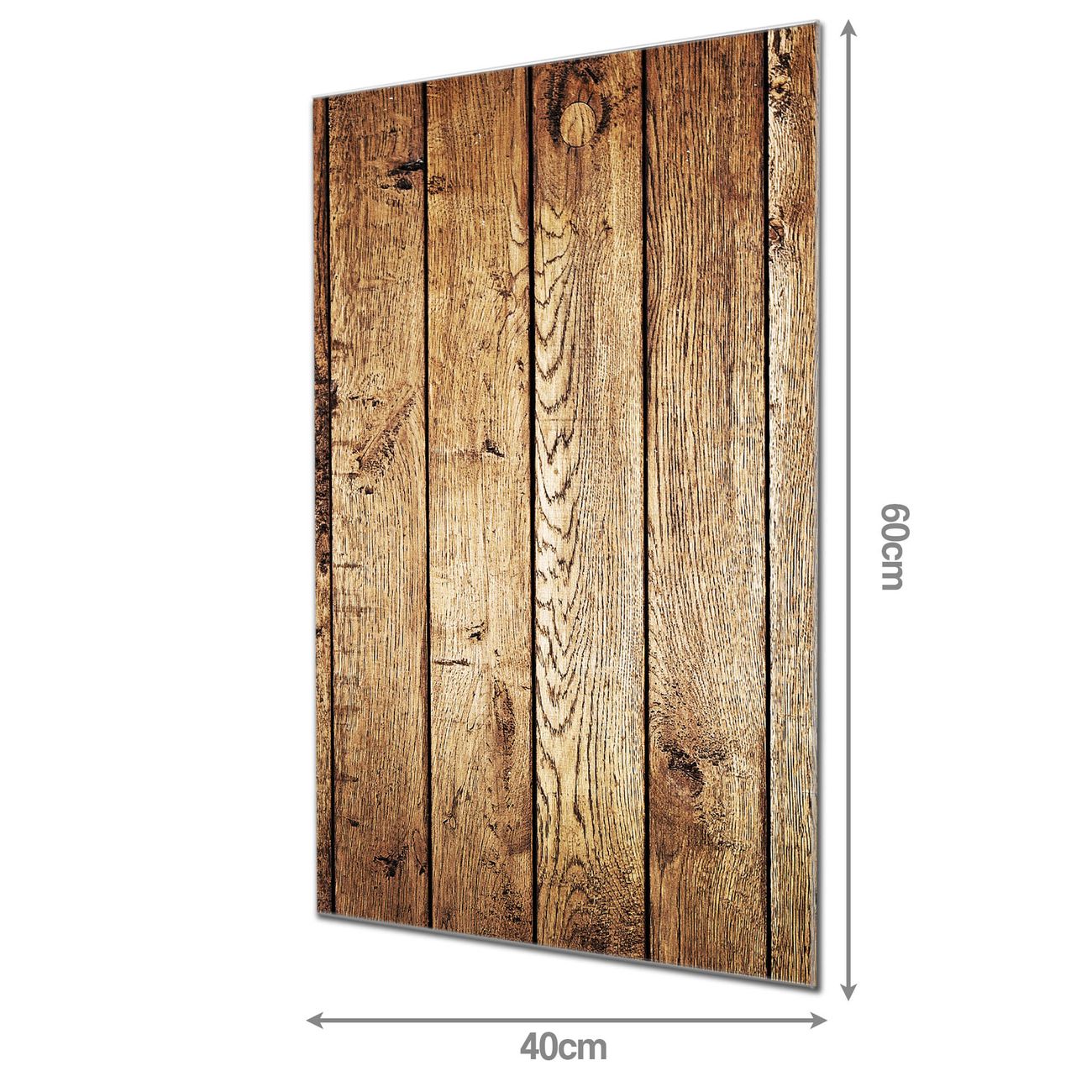 Material: 4mm Sicherheitsglas mit Metallrückwand Eigenschaften: beschreibbar, magnetisch, kratzfest Maße: 40x60x0,6cm, 3,60 kg schwer Motiv Nummer 12153 Geöltes Holz Zubehör: inklusive 4 Neodym-Magnete