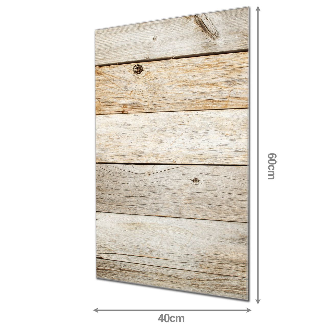 Material: 4mm Sicherheitsglas mit Metallrückwand Eigenschaften: beschreibbar, magnetisch, kratzfest Maße: 40x60x0,6cm, 3,60 kg schwer Motiv Nummer 12172 Graues Holz Zubehör: inklusive 4 Neodym-Magnete