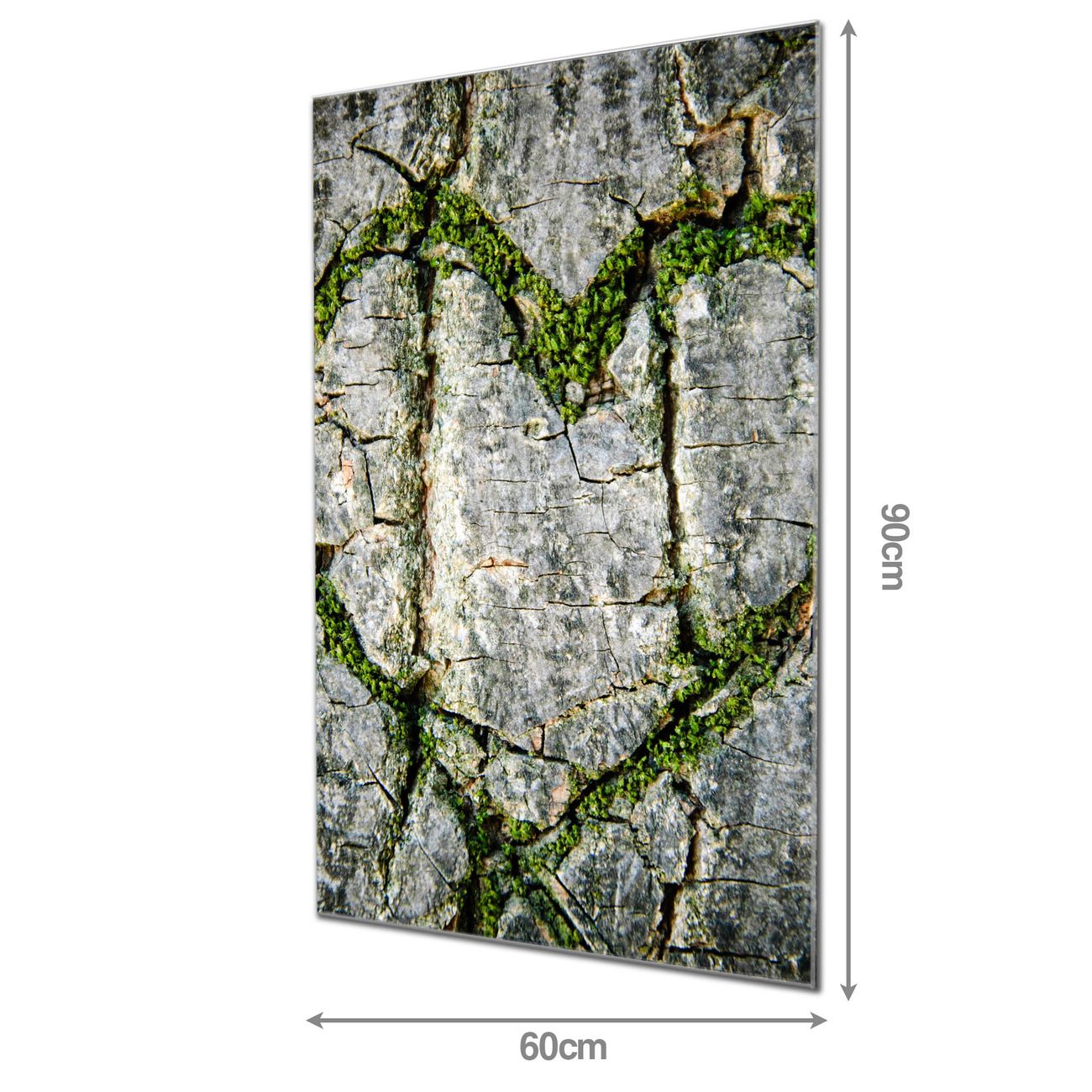 Material: 4mm Sicherheitsglas mit Metallrückwand Eigenschaften: beschreibbar, magnetisch, kratzfest Maße: 60x90x0,6cm, 8,10 kg schwer Motiv Nummer 12772 Herz Aus Moos Zubehör: inklusive 4 Neodym-Magnete