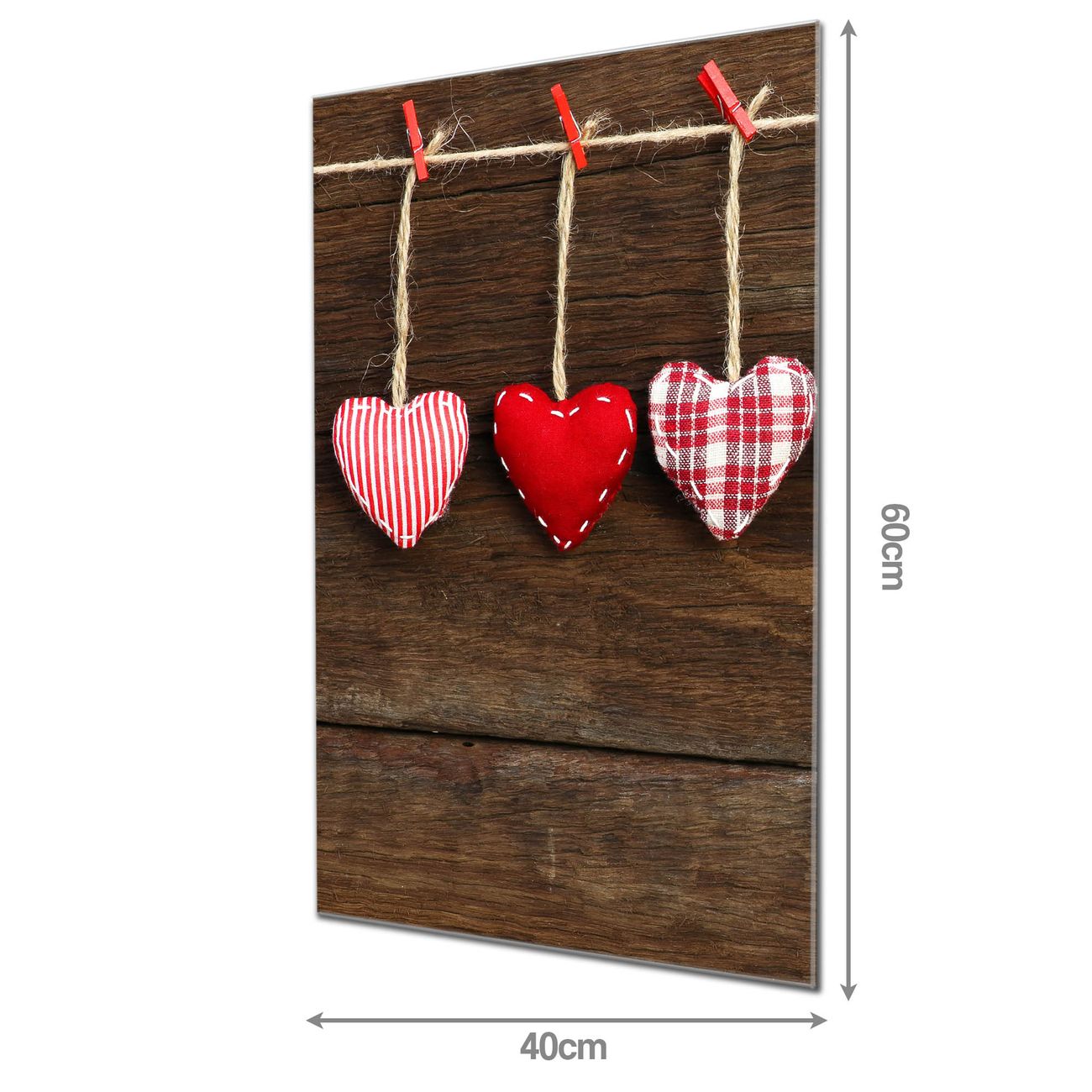 Material: 4mm Sicherheitsglas mit Metallrückwand Eigenschaften: beschreibbar, magnetisch, kratzfest Maße: 40x60x0,6cm, 3,60 kg schwer Motiv Nummer 12126 Kleine Herzen Zubehör: inklusive 4 Neodym-Magnete