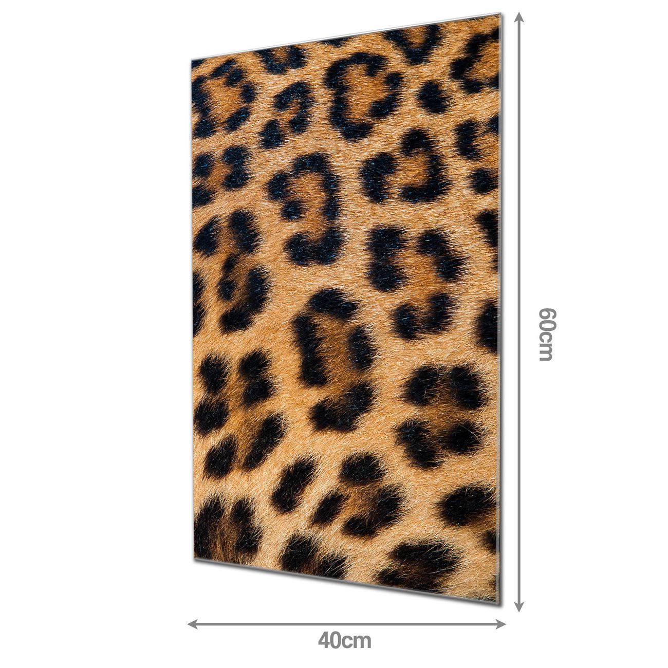 Material: 4mm Sicherheitsglas mit Metallrückwand Eigenschaften: beschreibbar, magnetisch, kratzfest Maße: 40x60x0,6cm, 3,60 kg schwer Motiv Nummer 12206 Leopardenfell Zubehör: inklusive 4 Neodym-Magnete