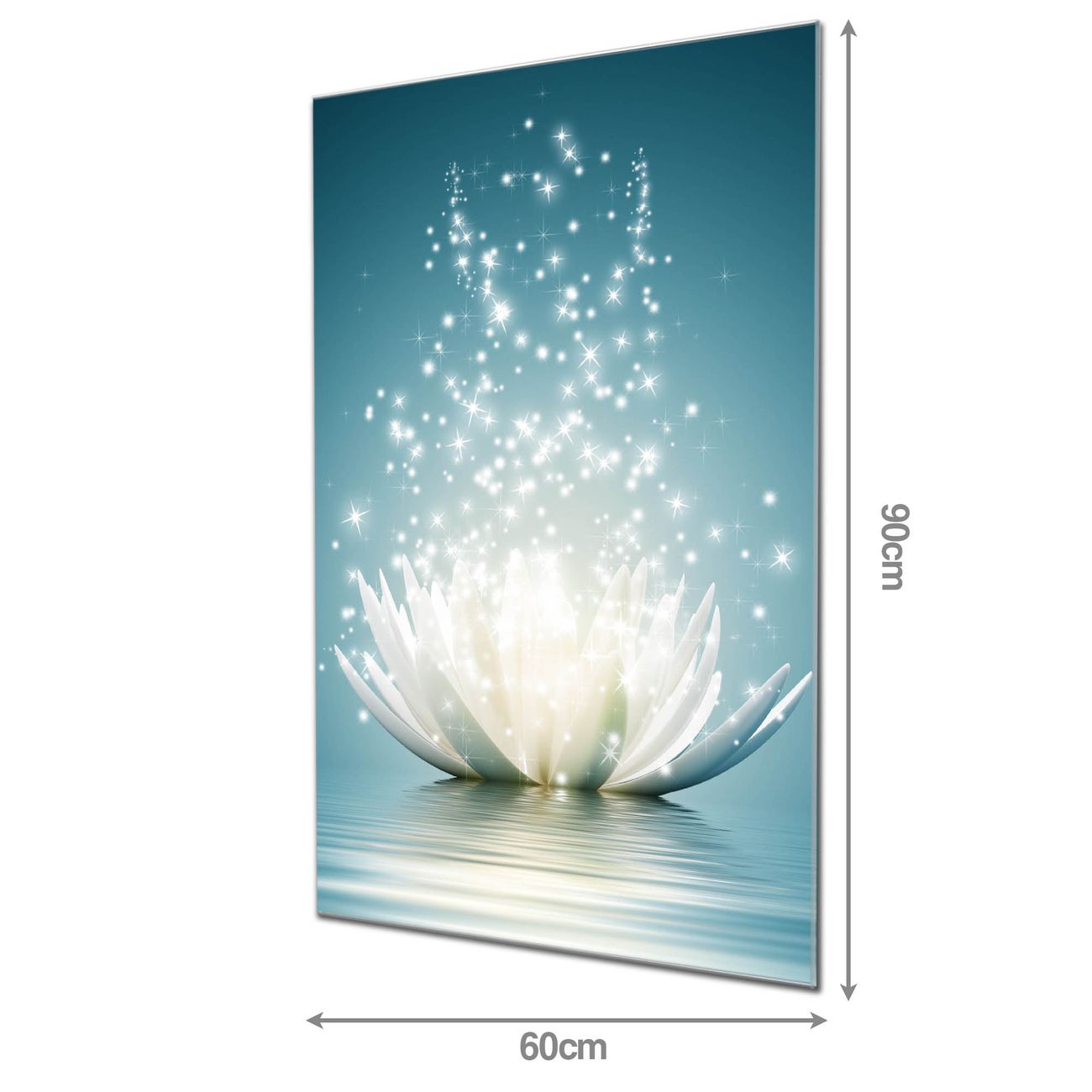 Material: 4mm Sicherheitsglas mit Metallrückwand Eigenschaften: beschreibbar, magnetisch, kratzfest Maße: 60x90x0,6cm, 8,10 kg schwer Motiv Nummer 10630 Magische Lotusblüte Zubehör: inklusive 4 Neodym-Magnete