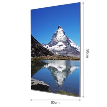 Material  4mm Sicherheitsglas mit Metallrückwand Eigenschaften  beschreibbar, magnetisch, kratzfest Maße  60x90x0,6cm, 8,10 kg schwer Motiv  Nummer 10411 Matterhorn Zubehör  inklusive 4 Neodym-Magnete