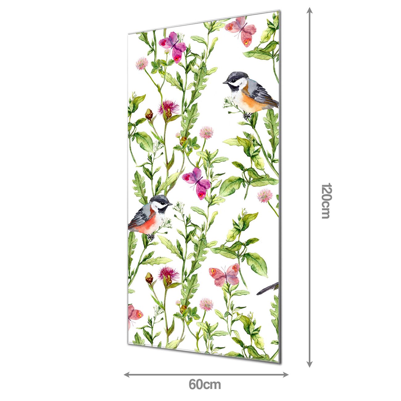 Material  4mm Sicherheitsglas mit Metallrückwand Eigenschaften  beschreibbar, magnetisch, kratzfest Maße  60x120x0,6cm, 10,80 kg schwer Motiv  Nummer 11138 Meisen im Klee Zubehör  inklusive 4 Neodym-Magnete