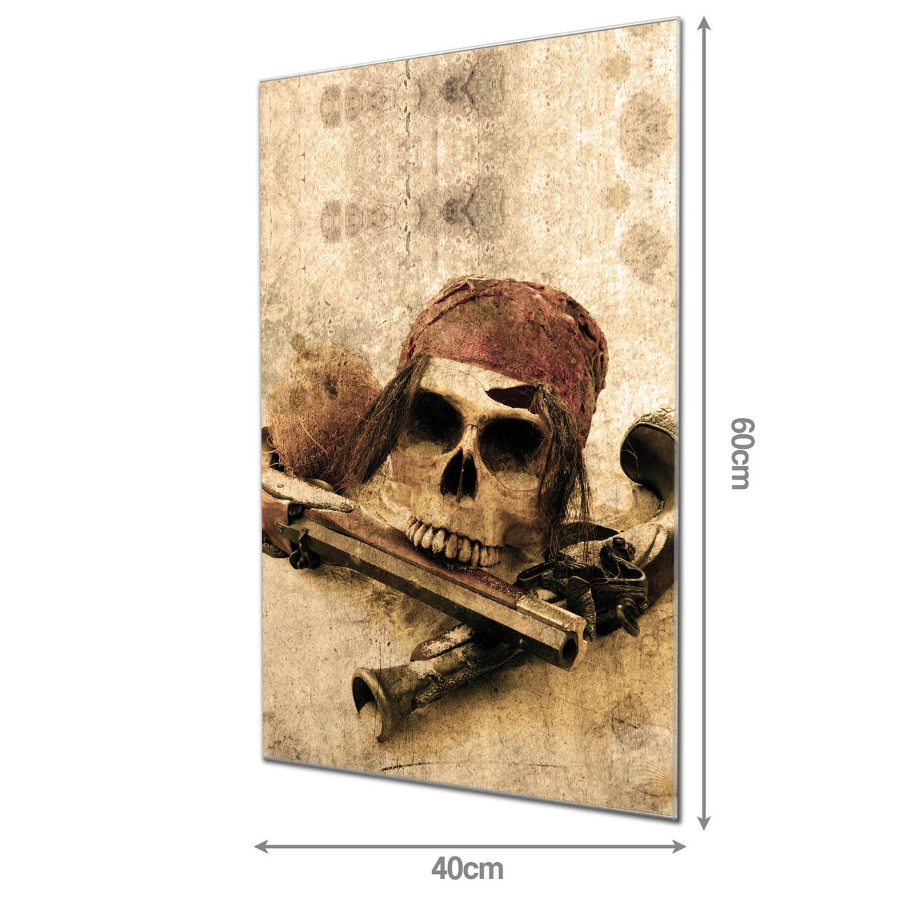 Material: 4mm Sicherheitsglas mit Metallrückwand Eigenschaften: beschreibbar, magnetisch, kratzfest Maße: 40x60x0,6cm, 3,60 kg schwer Motiv Nummer 10186 Pirat Zubehör: inklusive 4 Neodym-Magnete