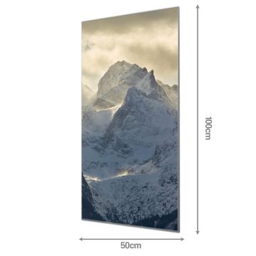 Material: 4mm Sicherheitsglas mit Metallrückwand Eigenschaften: beschreibbar, magnetisch, kratzfest Maße: 50x100x0,6cm, 7,50 kg schwer Motiv Nummer 12991 Alpen im Sonnenschein Zubehör: inklusive 4 Neodym-Magnete