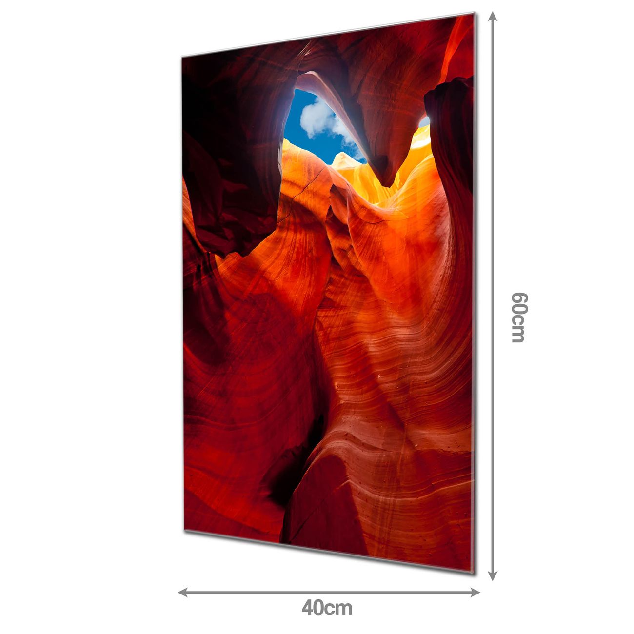 Material: 4mm Sicherheitsglas mit Metallrückwand Eigenschaften: beschreibbar, magnetisch, kratzfest Maße: 40x60x0,6cm, 3,60 kg schwer Motiv Nummer 12033 Antelope Canyon 2 Zubehör: inklusive 4 Neodym-Magnete