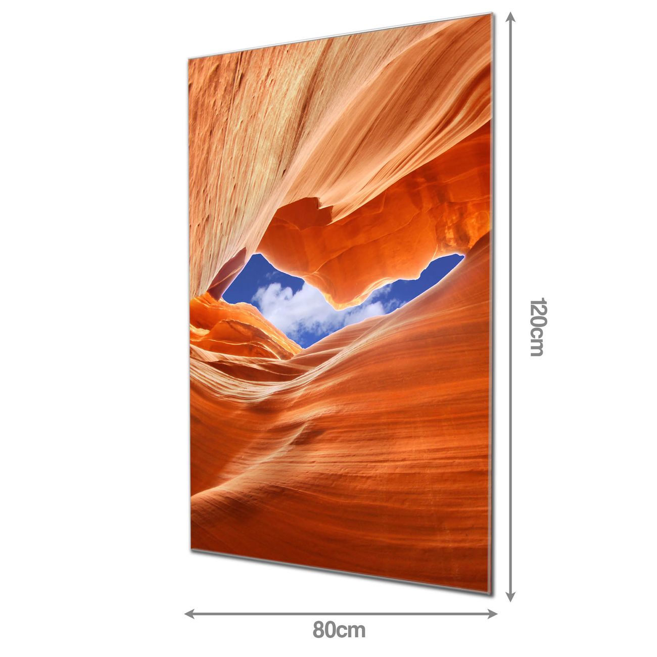 Material: 4mm Sicherheitsglas mit Metallrückwand Eigenschaften: beschreibbar, magnetisch, kratzfest Maße: 80x120x0,6cm, 14,40 kg schwer Motiv Nummer 12044 Antelope Canyon 3 Zubehör: inklusive 4 Neodym-Magnete