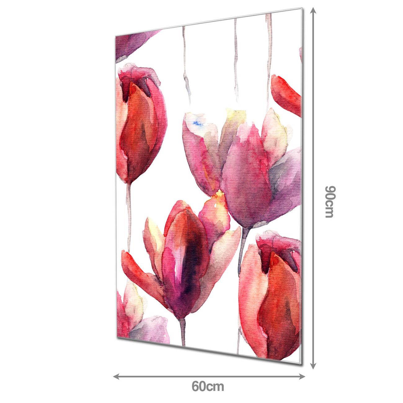 Material: 4mm Sicherheitsglas mit Metallrückwand Eigenschaften: beschreibbar, magnetisch, kratzfest Maße: 60x90x0,6cm, 8,10 kg schwer Motiv Nummer 12937 Aquarell Tulpen Zubehör: inklusive 4 Neodym-Magnete