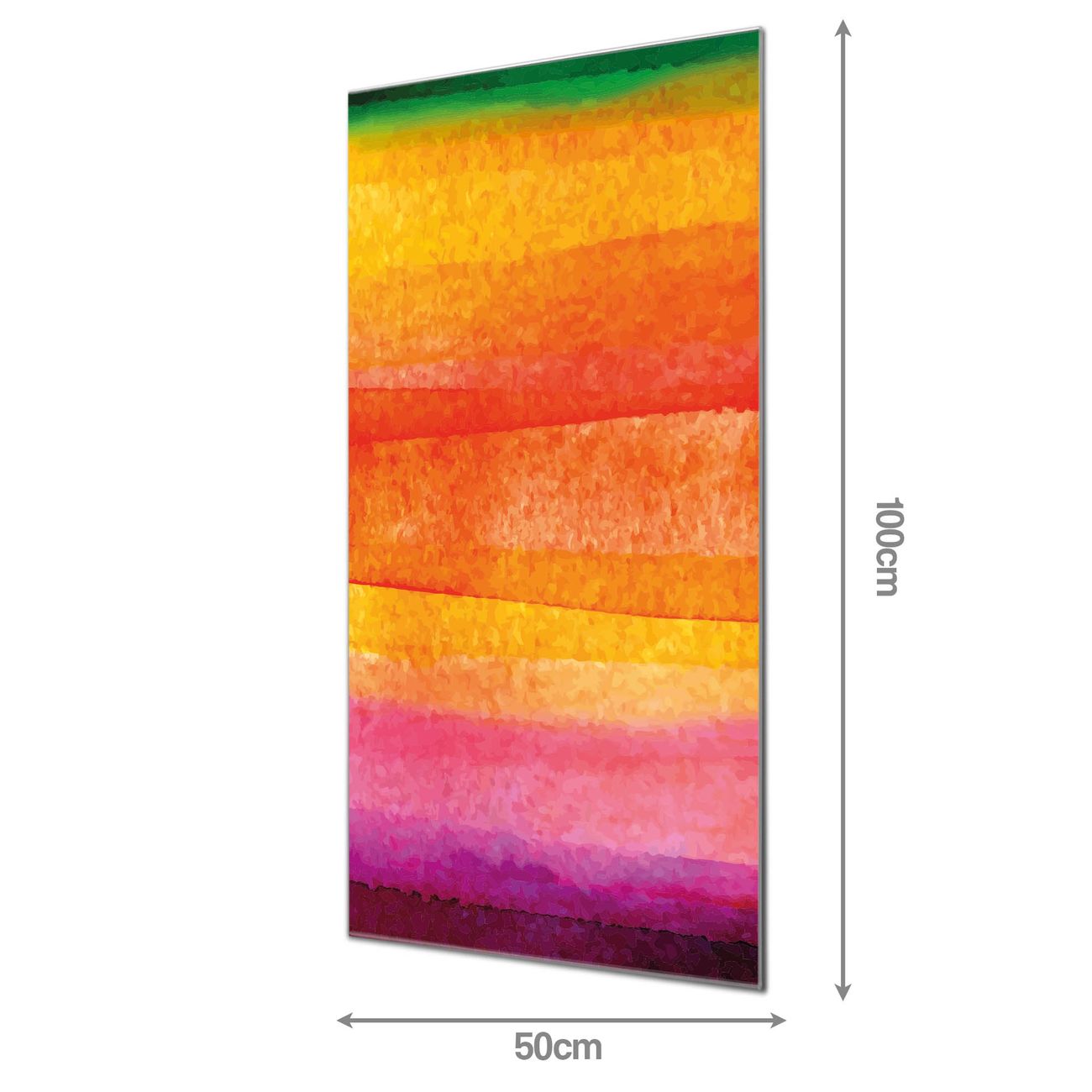Material: 4mm Sicherheitsglas mit Metallrückwand Eigenschaften: beschreibbar, magnetisch, kratzfest Maße: 50x100x0,6cm, 7,50 kg schwer Motiv Nummer 12936 Aquarell Zubehör: inklusive 4 Neodym-Magnete