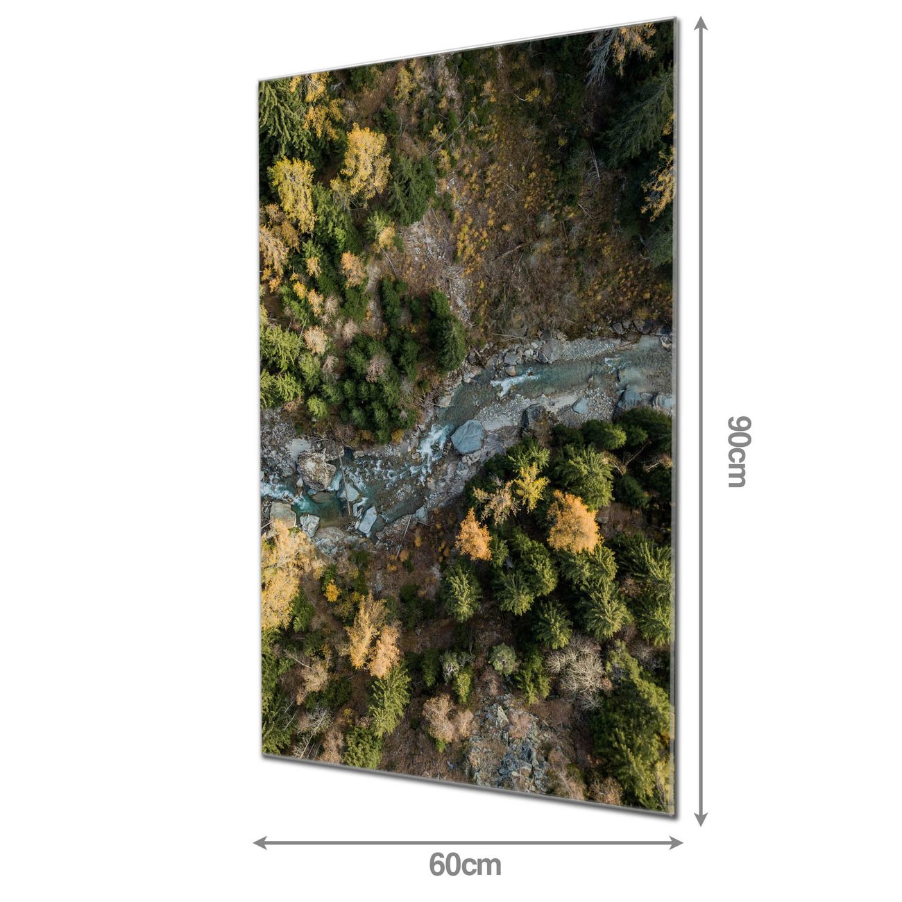Material: 4mm Sicherheitsglas mit Metallrückwand Eigenschaften: beschreibbar, magnetisch, kratzfest Maße: 60x90x0,6cm, 8,10 kg schwer Motiv Nummer 12871 Fluss im Tal 2 Zubehör: inklusive 4 Neodym-Magnete