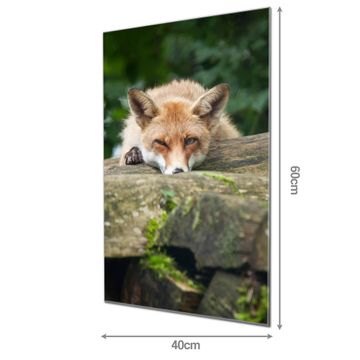 Material: 4mm Sicherheitsglas mit Metallrückwand Eigenschaften: beschreibbar, magnetisch, kratzfest Maße: 40x60x0,6cm, 3,60 kg schwer Motiv Nummer 12902 Fuchs Relax Zubehör: inklusive 4 Neodym-Magnete