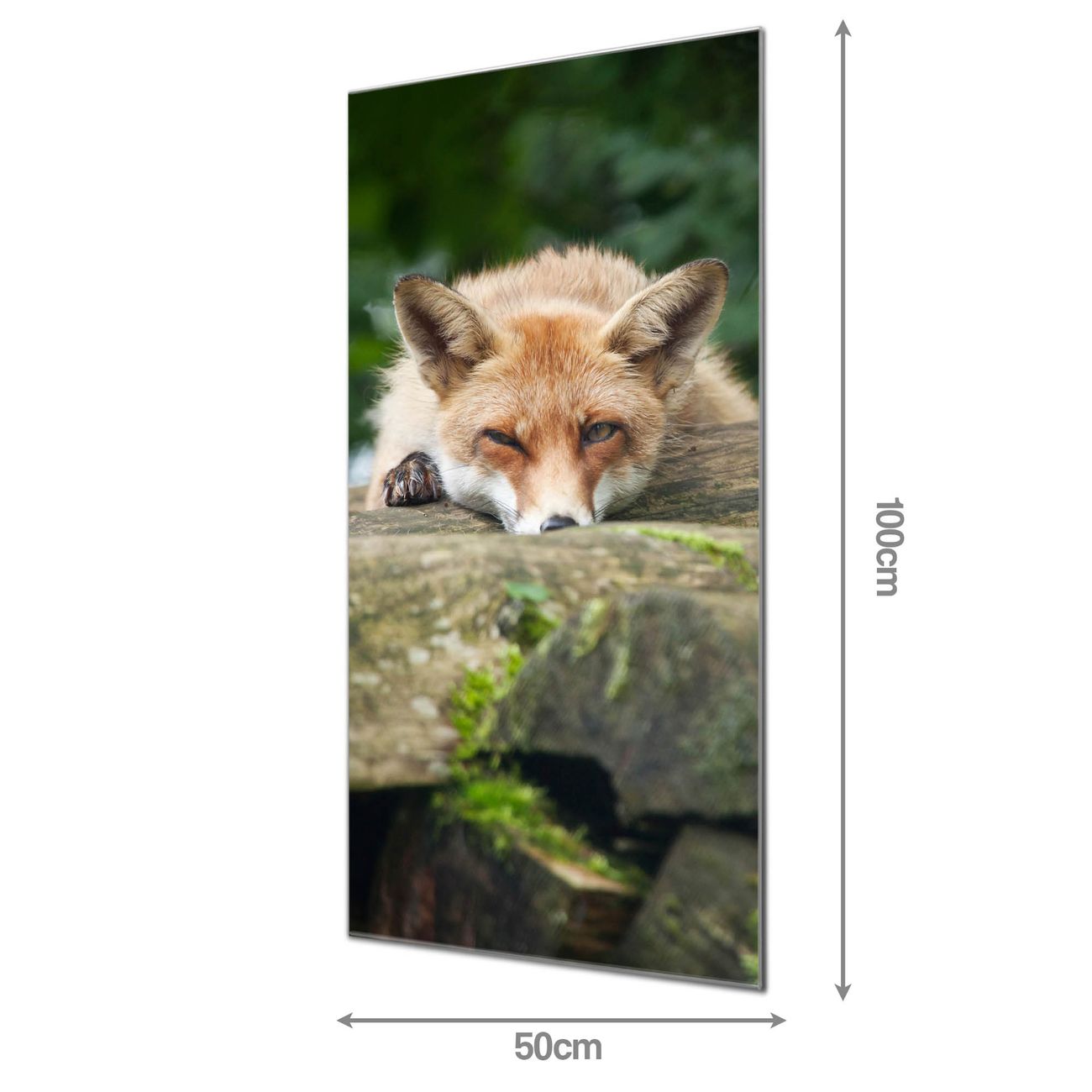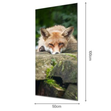 Material: 4mm Sicherheitsglas mit Metallrückwand Eigenschaften: beschreibbar, magnetisch, kratzfest Maße: 50x100x0,6cm, 7,50 kg schwer Motiv Nummer 12902 Fuchs Relax Zubehör: inklusive 4 Neodym-Magnete