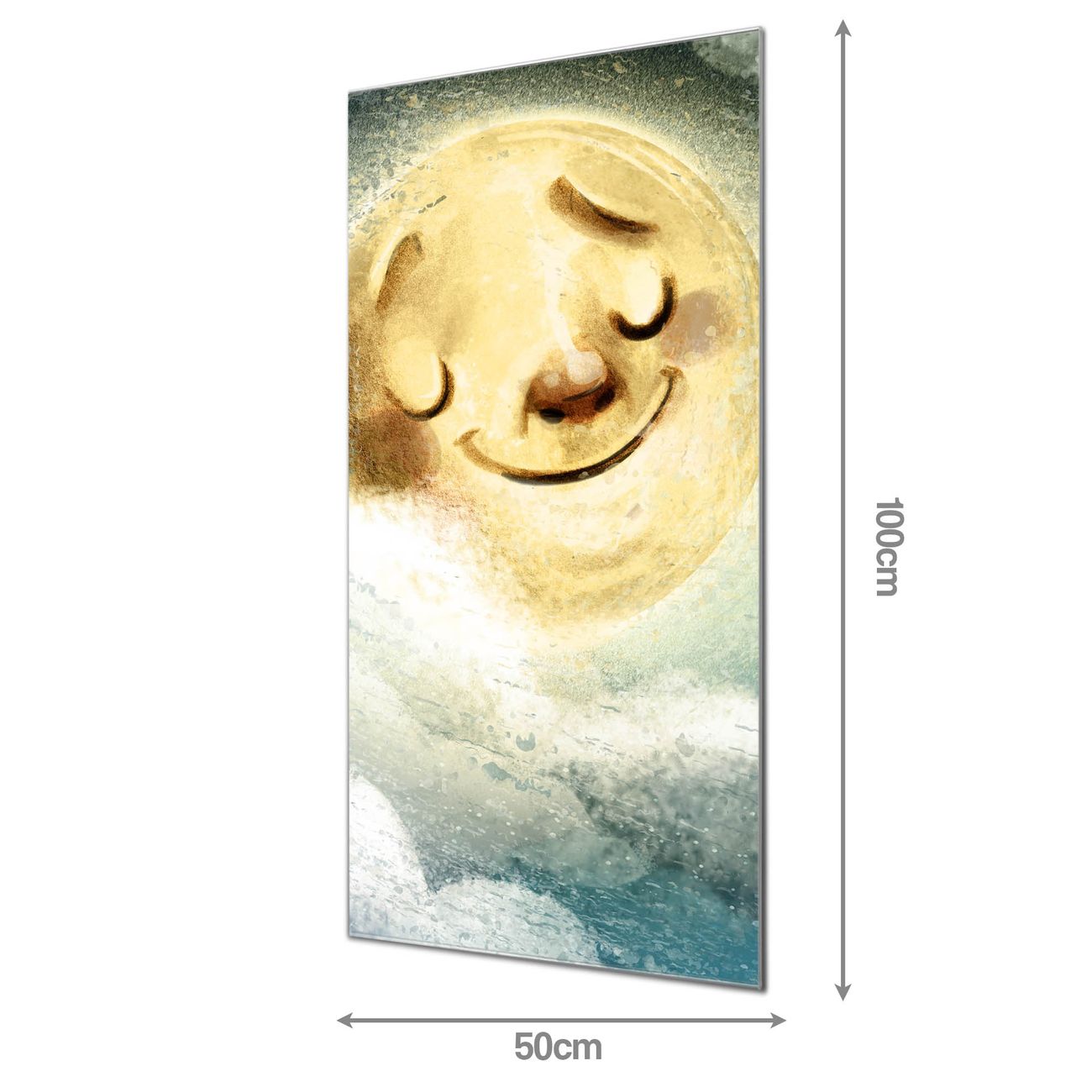 Material: 4mm Sicherheitsglas mit Metallrückwand Eigenschaften: beschreibbar, magnetisch, kratzfest Maße: 50x100x0,6cm, 7,50 kg schwer Motiv Nummer 12857 Glücksmond Zubehör: inklusive 4 Neodym-Magnete