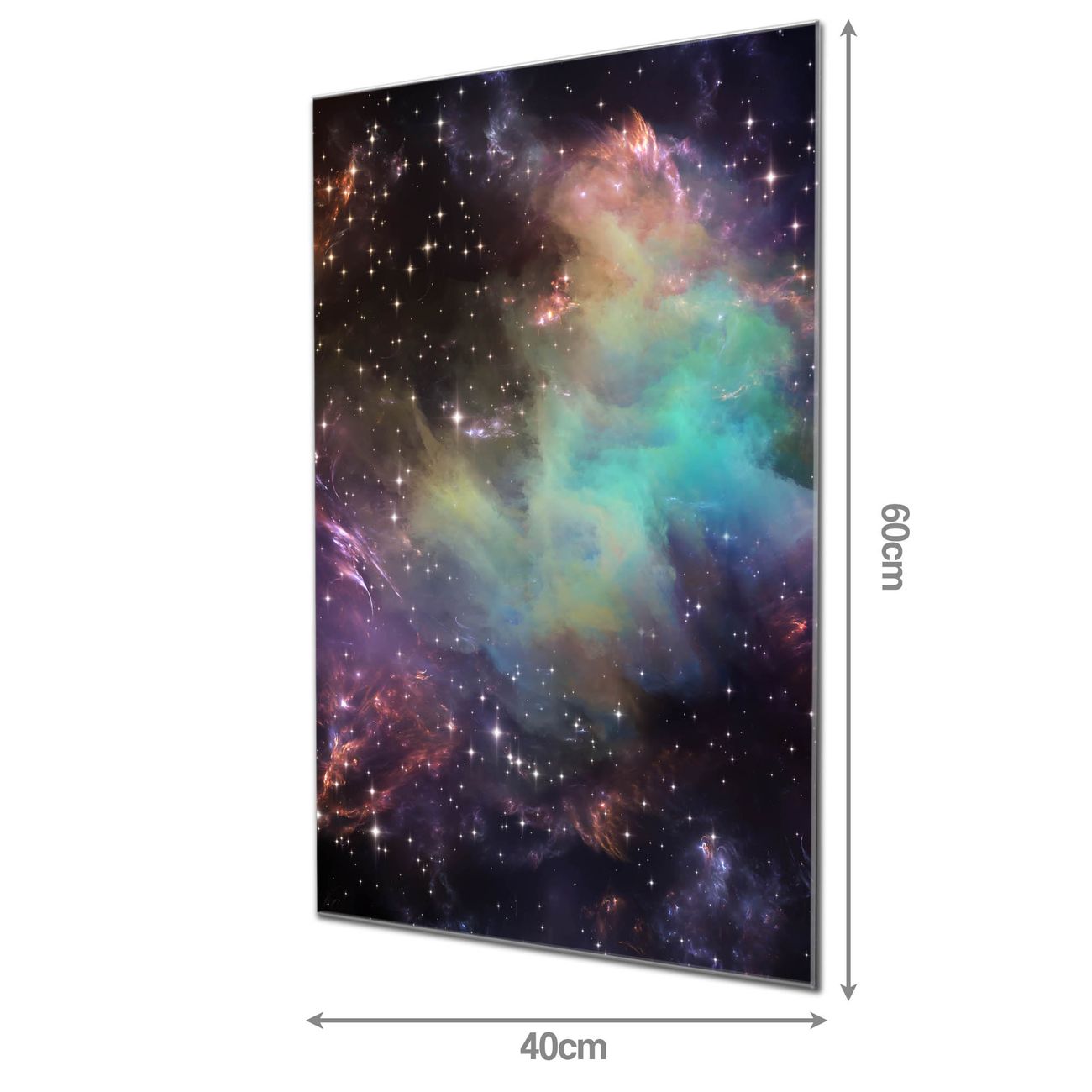 Material: 4mm Sicherheitsglas mit Metallrückwand Eigenschaften: beschreibbar, magnetisch, kratzfest Maße: 40x60x0,6cm, 3,60 kg schwer Motiv Nummer 12844 Im Weltall 2 Zubehör: inklusive 4 Neodym-Magnete