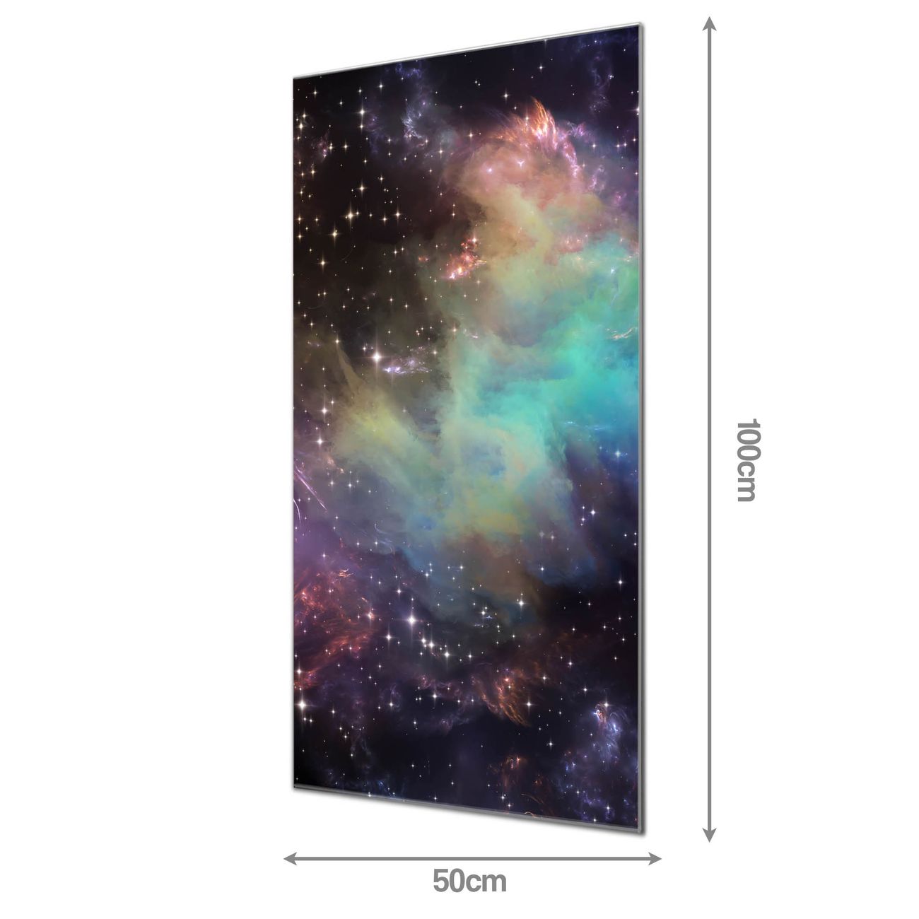 Material: 4mm Sicherheitsglas mit Metallrückwand Eigenschaften: beschreibbar, magnetisch, kratzfest Maße: 50x100x0,6cm, 7,50 kg schwer Motiv Nummer 12844 Im Weltall 2 Zubehör: inklusive 4 Neodym-Magnete