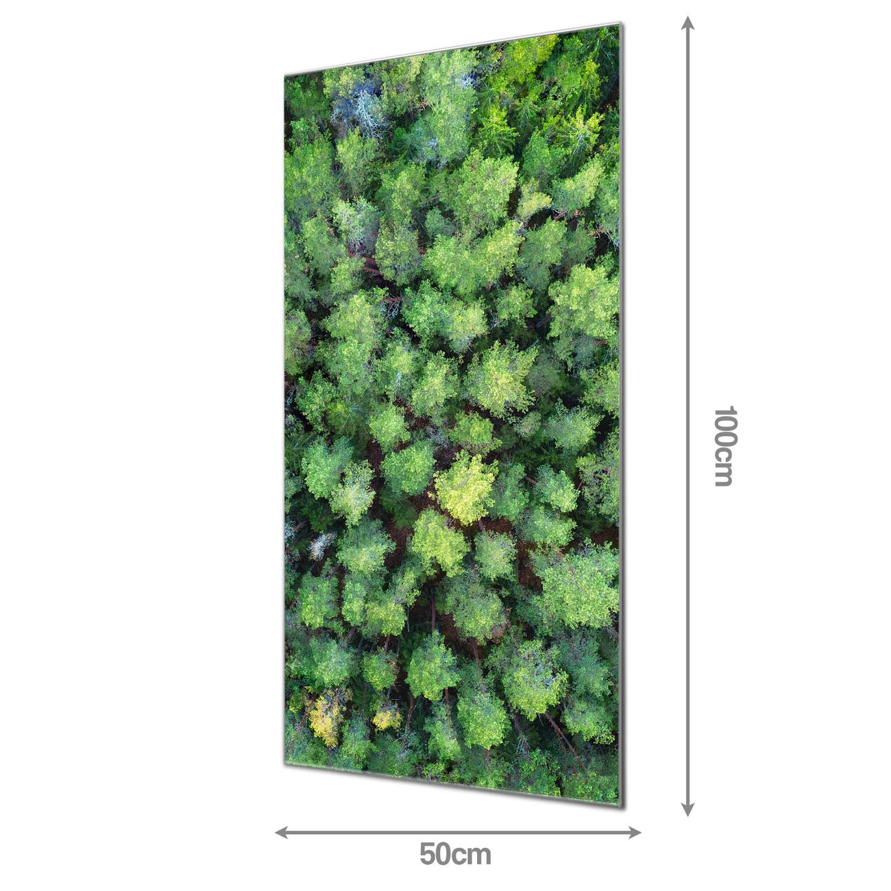 Material: 4mm Sicherheitsglas mit Metallrückwand Eigenschaften: beschreibbar, magnetisch, kratzfest Maße: 50x100x0,6cm, 7,50 kg schwer Motiv Nummer 12872 Nadelwald Zubehör: inklusive 4 Neodym-Magnete