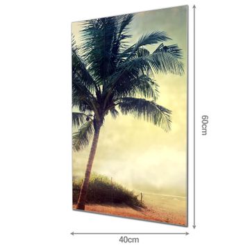 Material: 4mm Sicherheitsglas mit Metallrückwand Eigenschaften: beschreibbar, magnetisch, kratzfest Maße: 40x60x0,6cm, 3,60 kg schwer Motiv Nummer 12909 Palme am Strand Zubehör: inklusive 4 Neodym-Magnete