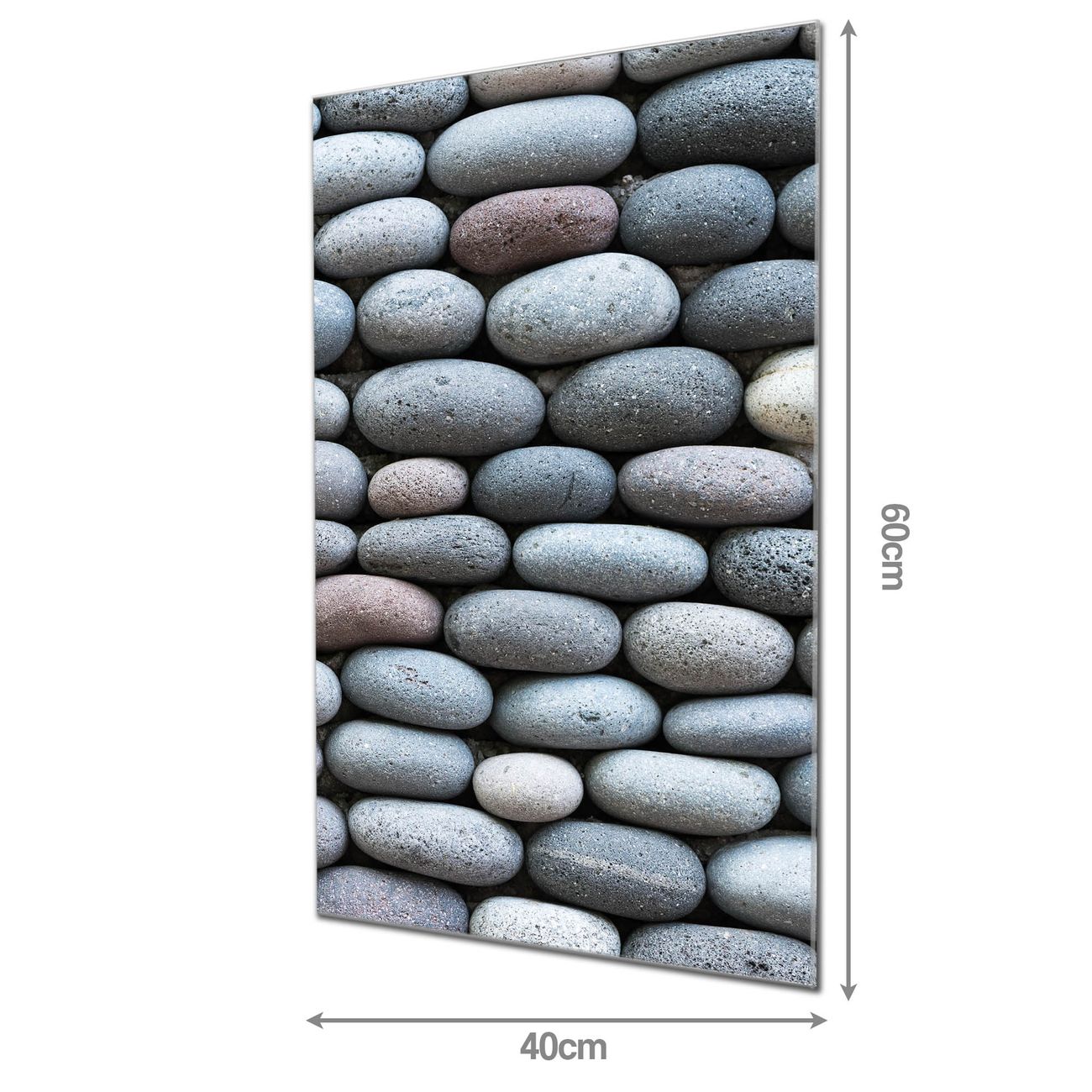 Material: 4mm Sicherheitsglas mit Metallrückwand Eigenschaften: beschreibbar, magnetisch, kratzfest Maße: 40x60x0,6cm, 3,60 kg schwer Motiv Nummer 12051 Runde Steine Zubehör: inklusive 4 Neodym-Magnete
