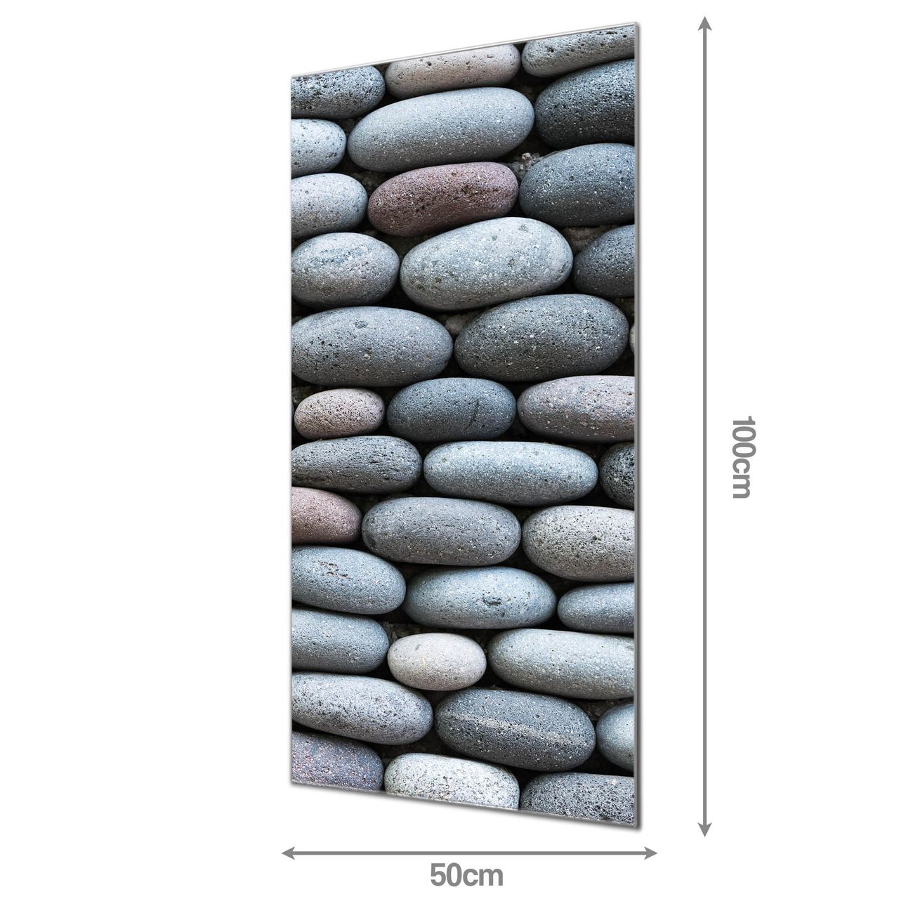Material: 4mm Sicherheitsglas mit Metallrückwand Eigenschaften: beschreibbar, magnetisch, kratzfest Maße: 50x100x0,6cm, 7,50 kg schwer Motiv Nummer 12051 Runde Steine Zubehör: inklusive 4 Neodym-Magnete