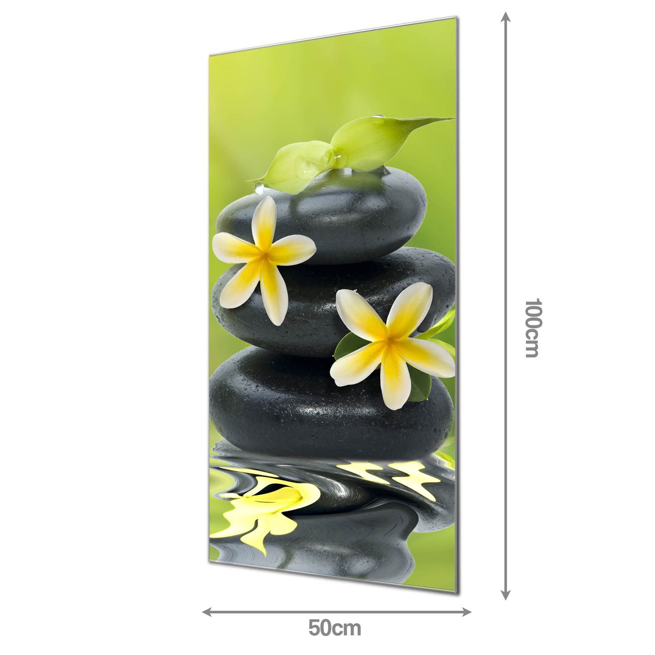 Material: 4mm Sicherheitsglas mit Metallrückwand Eigenschaften: beschreibbar, magnetisch, kratzfest Maße: 50x100x0,6cm, 7,50 kg schwer Motiv Nummer 12820 Steine & Relax 4 Zubehör: inklusive 4 Neodym-Magnete