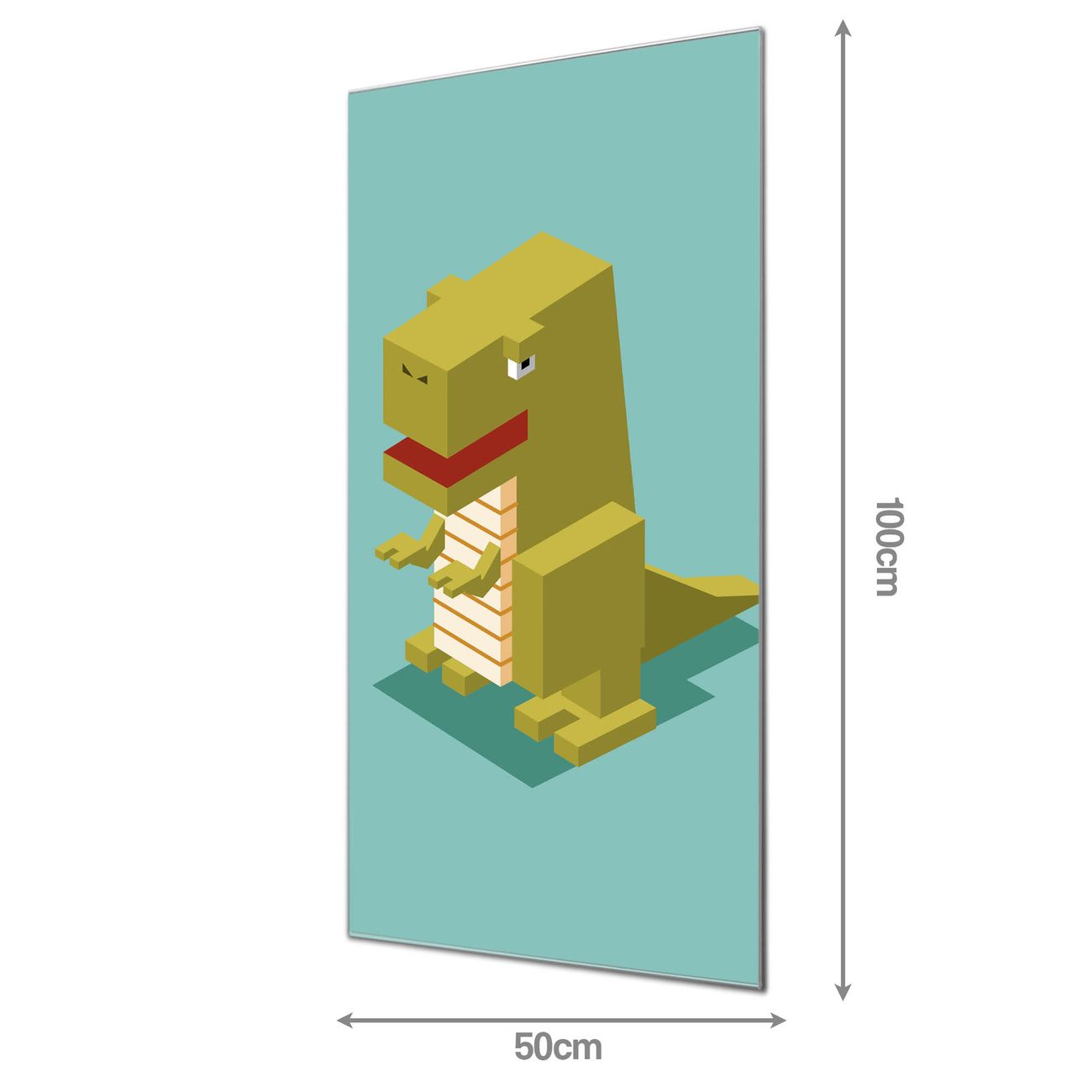Material: 4mm Sicherheitsglas mit Metallrückwand Eigenschaften: beschreibbar, magnetisch, kratzfest Maße: 50x100x0,6cm, 7,50 kg schwer Motiv Nummer 12949 T-Rex Block Zubehör: inklusive 4 Neodym-Magnete