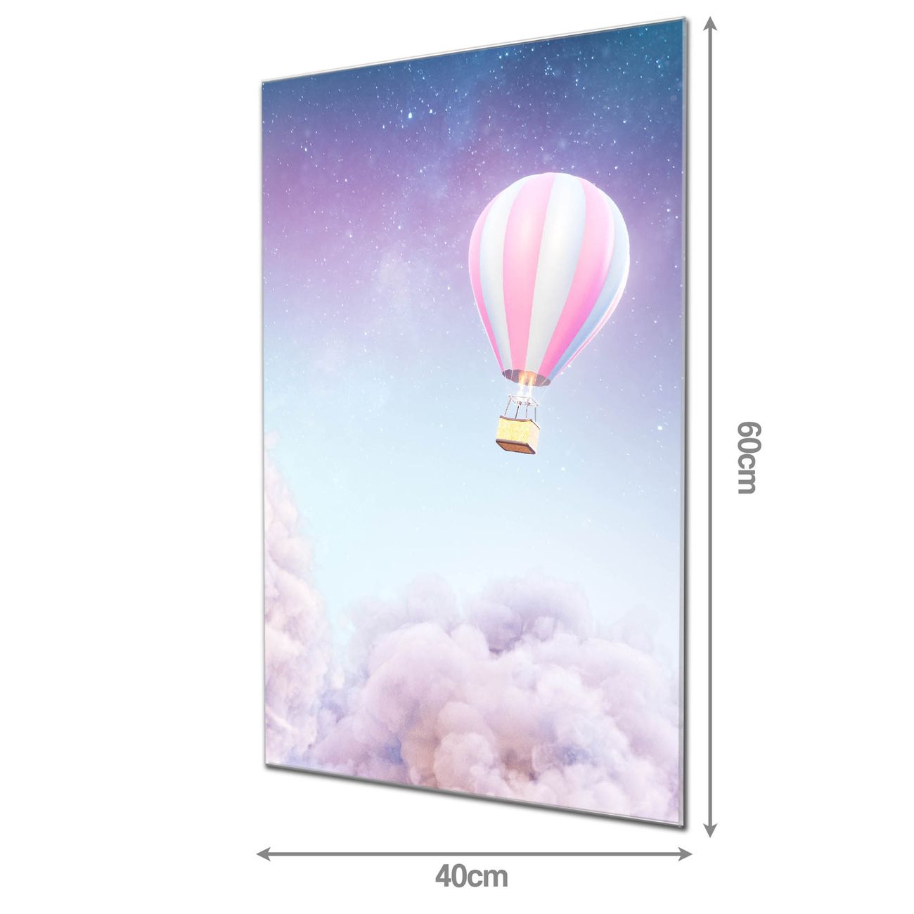 Material: 4mm Sicherheitsglas mit Metallrückwand Eigenschaften: beschreibbar, magnetisch, kratzfest Maße: 40x60x0,6cm, 3,60 kg schwer Motiv Nummer 12863 Über den Wolken Zubehör: inklusive 4 Neodym-Magnete