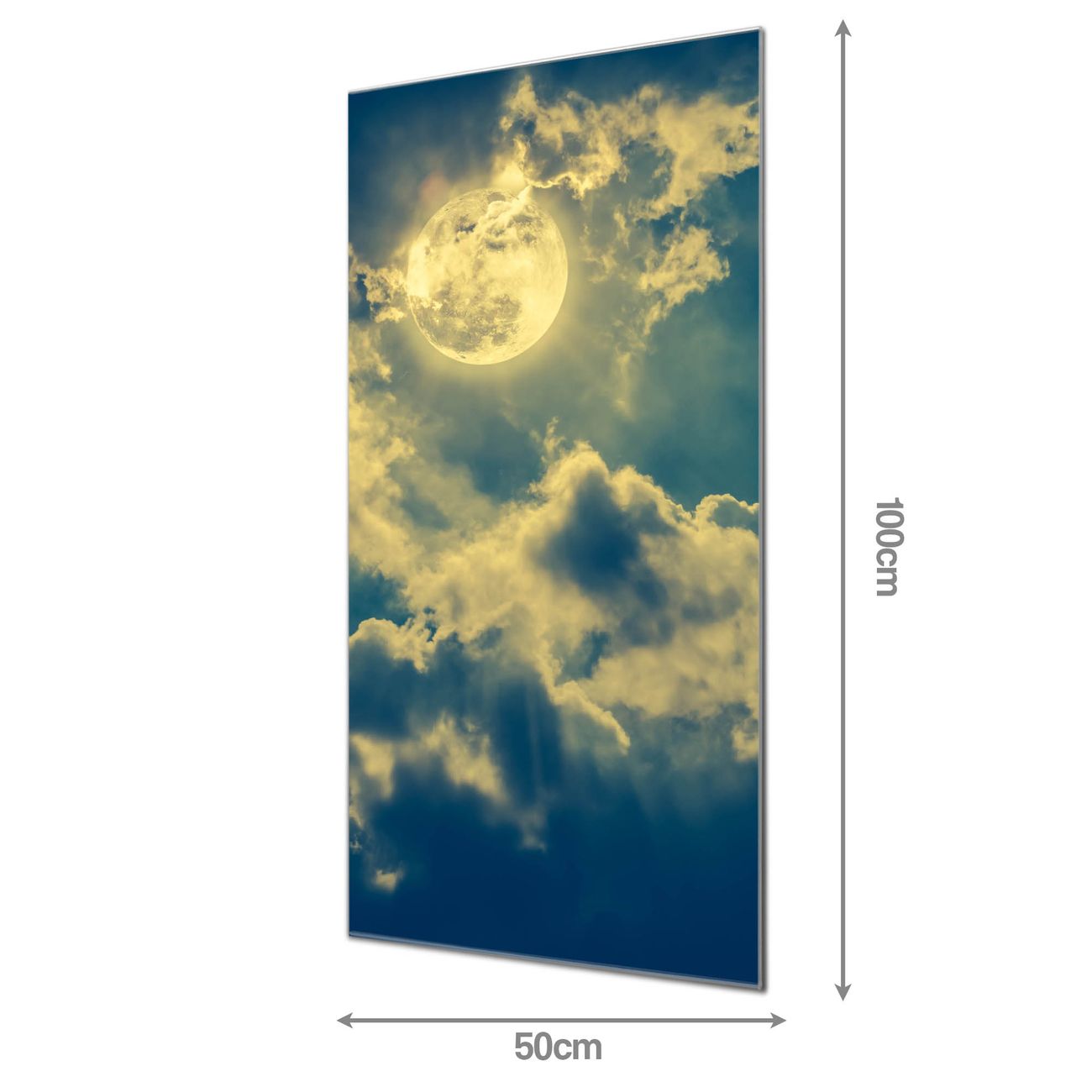 Material: 4mm Sicherheitsglas mit Metallrückwand Eigenschaften: beschreibbar, magnetisch, kratzfest Maße: 50x100x0,6cm, 7,50 kg schwer Motiv Nummer 12850 Vollmond 2 Zubehör: inklusive 4 Neodym-Magnete