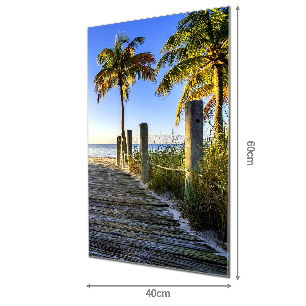 Material: 4mm Sicherheitsglas mit Metallrückwand Eigenschaften: beschreibbar, magnetisch, kratzfest Maße: 40x60x0,6cm, 3,60 kg schwer Motiv Nummer 12050 Weg zum Strand Zubehör: inklusive 4 Neodym-Magnete