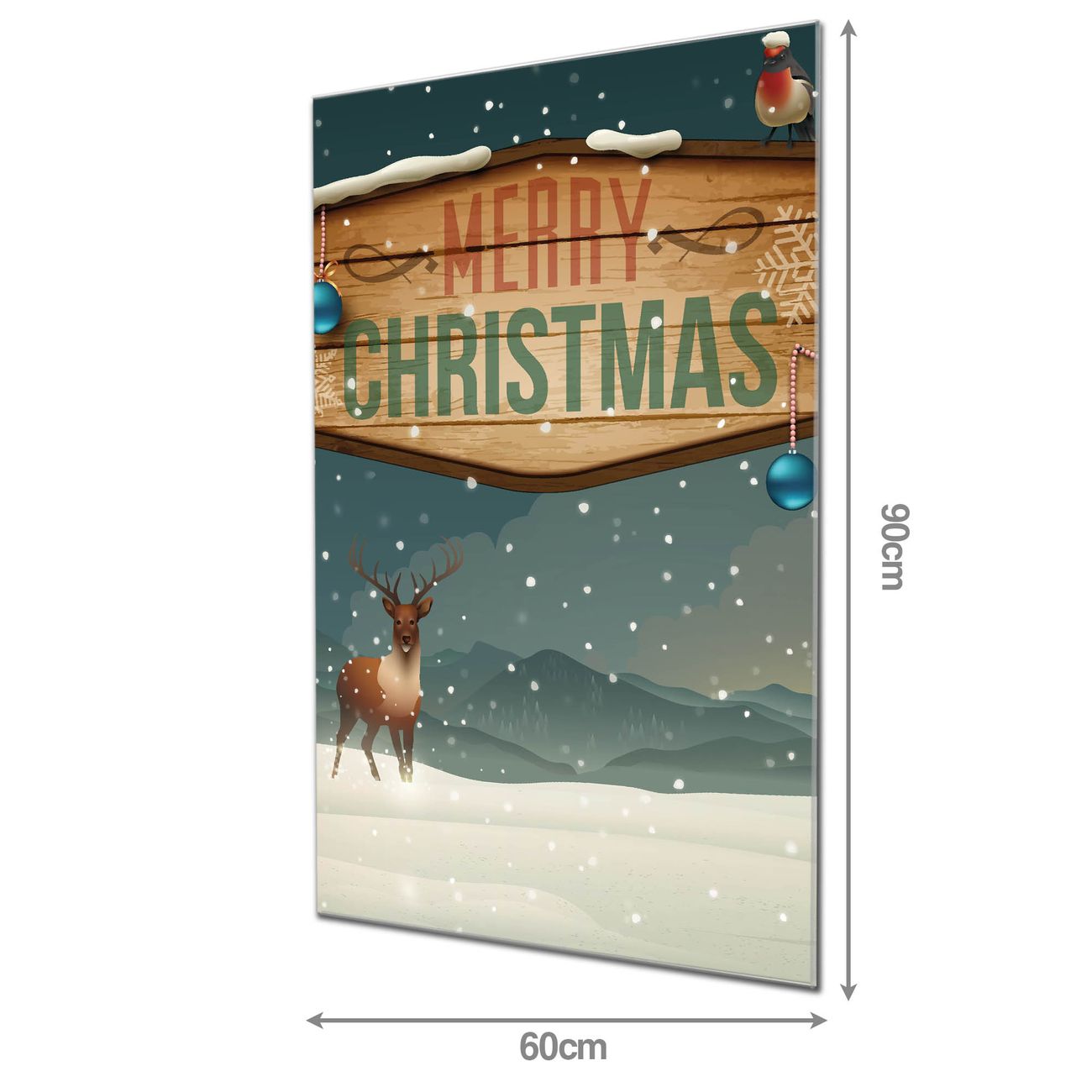 Material: 4mm Sicherheitsglas mit Metallrückwand Eigenschaften: beschreibbar, magnetisch, kratzfest Maße: 60x90x0,6cm, 8,10 kg schwer Motiv Nummer 12543 Weihnachtsland Zubehör: inklusive 4 Neodym-Magnete