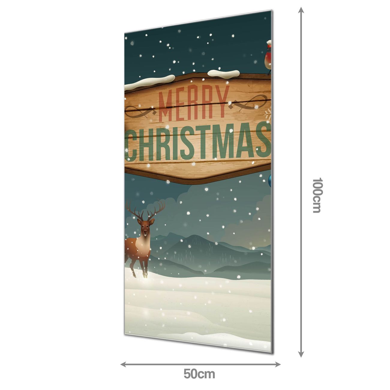 Material: 4mm Sicherheitsglas mit Metallrückwand Eigenschaften: beschreibbar, magnetisch, kratzfest Maße: 50x100x0,6cm, 7,50 kg schwer Motiv Nummer 12543 Weihnachtsland Zubehör: inklusive 4 Neodym-Magnete