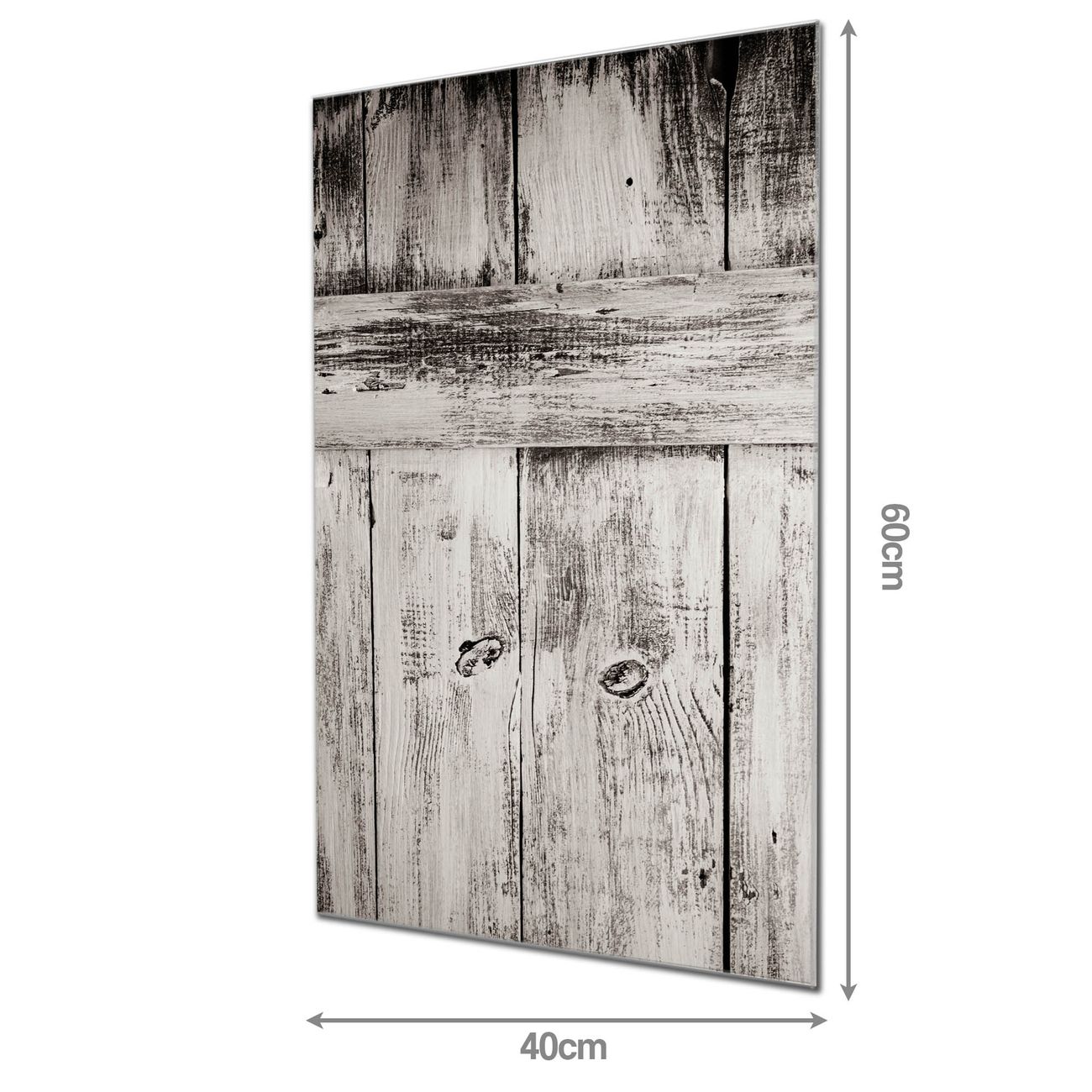 Material: 4mm Sicherheitsglas mit Metallrückwand Eigenschaften: beschreibbar, magnetisch, kratzfest Maße: 40x60x0,6cm, 3,60 kg schwer Motiv Nummer 12969 weiße Bretter Zubehör: inklusive 4 Neodym-Magnete