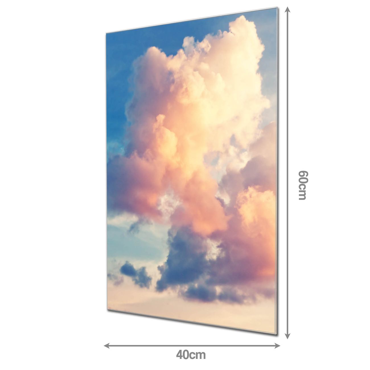 Material: 4mm Sicherheitsglas mit Metallrückwand Eigenschaften: beschreibbar, magnetisch, kratzfest Maße: 40x60x0,6cm, 3,60 kg schwer Motiv Nummer 12839 Wolken 10 Zubehör: inklusive 4 Neodym-Magnete