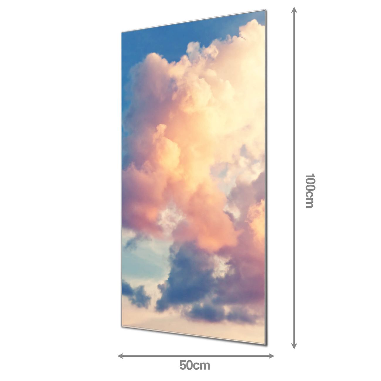Material: 4mm Sicherheitsglas mit Metallrückwand Eigenschaften: beschreibbar, magnetisch, kratzfest Maße: 50x100x0,6cm, 7,50 kg schwer Motiv Nummer 12839 Wolken 10 Zubehör: inklusive 4 Neodym-Magnete