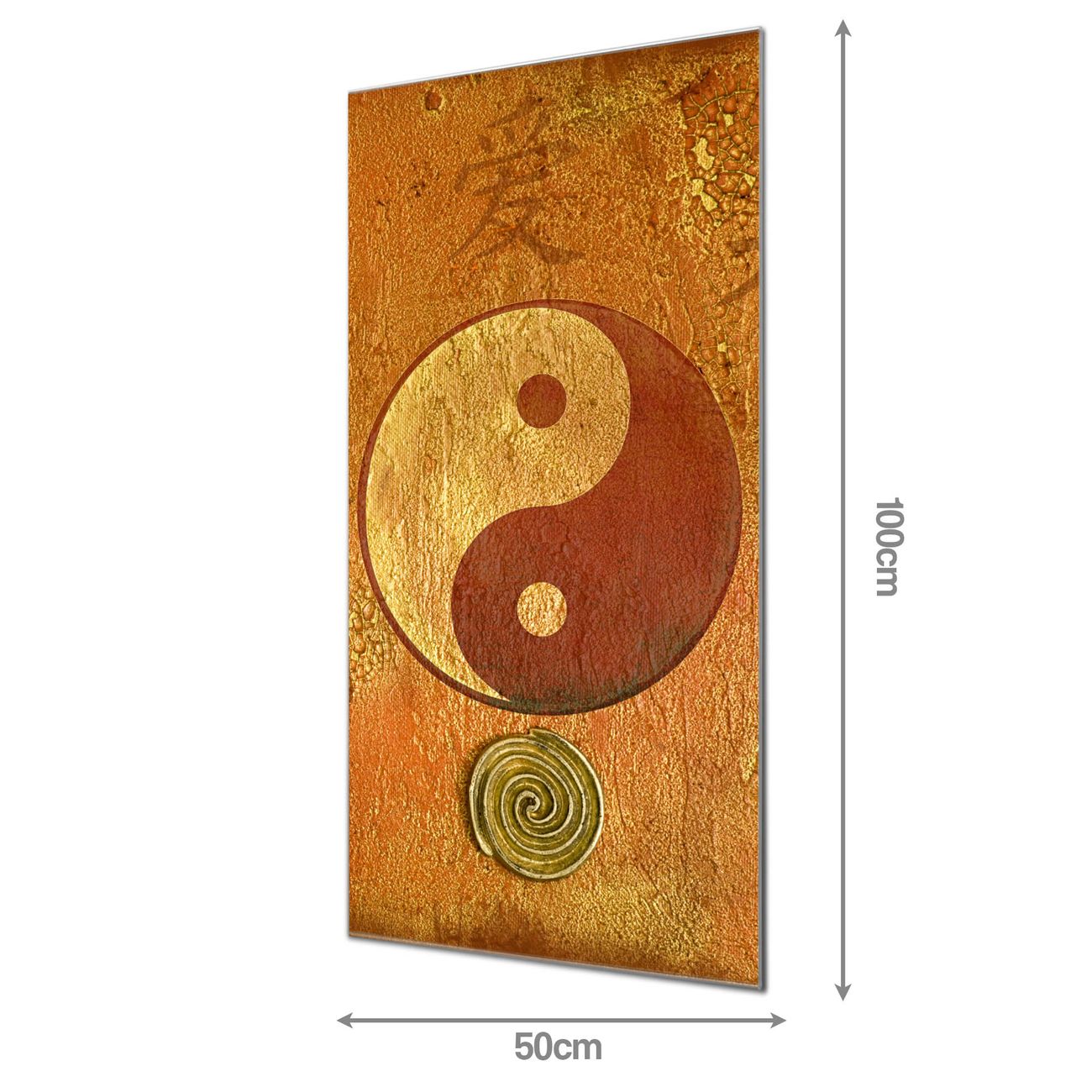 Material: 4mm Sicherheitsglas mit Metallrückwand Eigenschaften: beschreibbar, magnetisch, kratzfest Maße: 50x100x0,6cm, 7,50 kg schwer Motiv Nummer 12054 Yin Yang Zubehör: inklusive 4 Neodym-Magnete