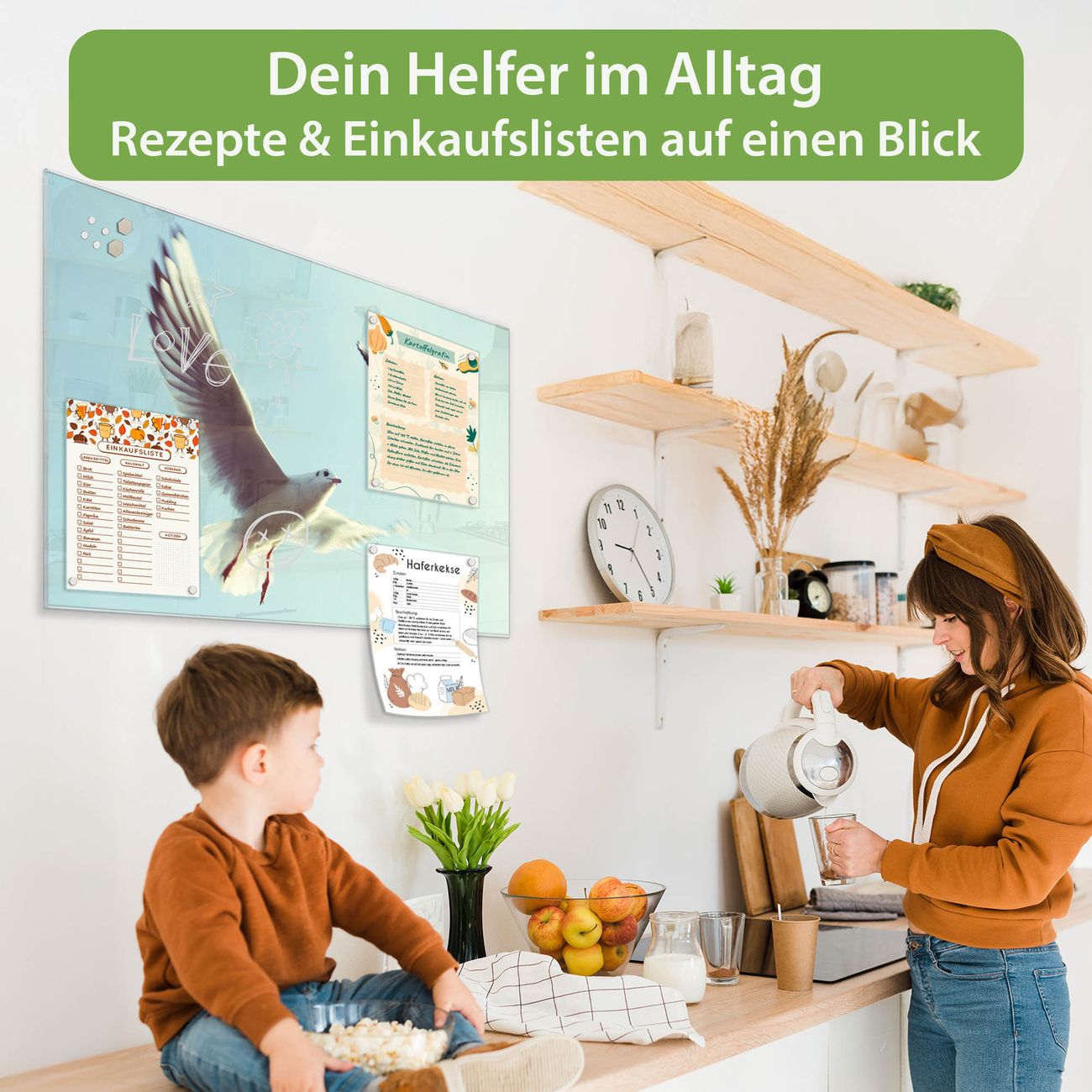 Auf der glatten Glasoberfläche lassen sich Termine, Rezepte oder Notizen ganz einfach mit Kreidestiften festhalten und rückstandslos entfernen. Starke Neodym-Magnete halten Ihre wichtigsten Erinnerungen sicher an Ort und Stelle. So entsteht Ihre ganz persönliche Ideenwand - jeden Tag neu.