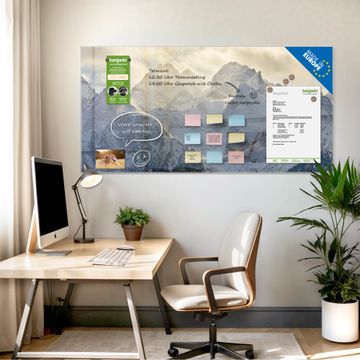 Die banjado Glas Magnettafel mit dem Motiv Motiv Alpen im Sonnenschein verbindet Funktionalität mit Stil. Sie ersetzt das Zettelchaos durch klare Strukturen und bringt dabei eine warme, natürliche Atmosphäre in Ihr Zuhause. Ob im Büro, in der Küche oder im Eingangsbereich - dieses Design-Board zieht Blicke an und sorgt für Ordnung mit Charakter.