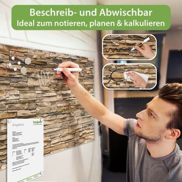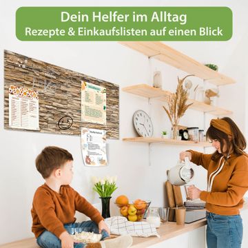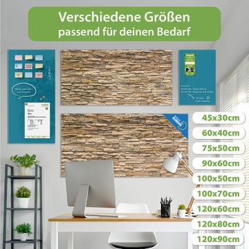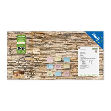 Material: 4mm Sicherheitsglas mit Metallrückwand Eigenschaften: beschreibbar, magnetisch, kratzfest Maße: 100x50x0,6cm, 7,50kg schwer Motiv Nummer 12155 Alte Mauer Zubehör: inklusive 4 Neodym-Magnete