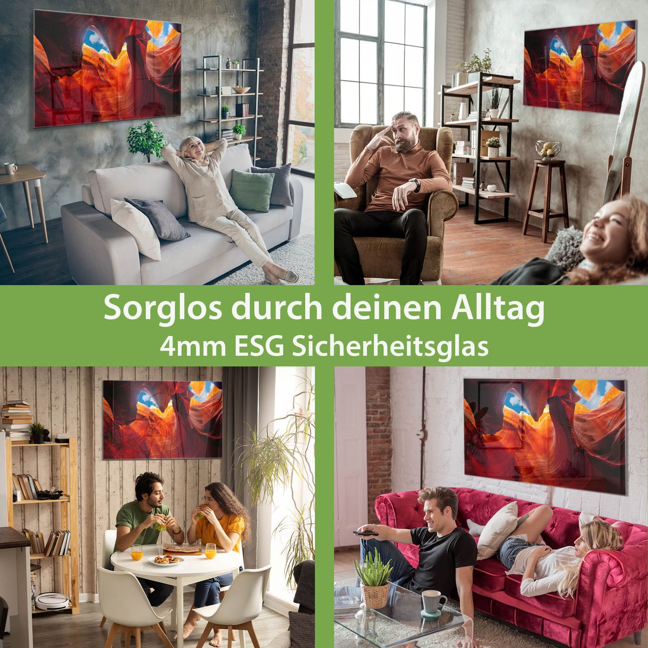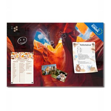 Material: 4mm Sicherheitsglas mit Metallrückwand Eigenschaften: beschreibbar, magnetisch, kratzfest Maße: 75x50x0,6cm, 5,63kg schwer Motiv Nummer 12033 Antelope Canyon 2 Zubehör: inklusive 4 Neodym-Magnete